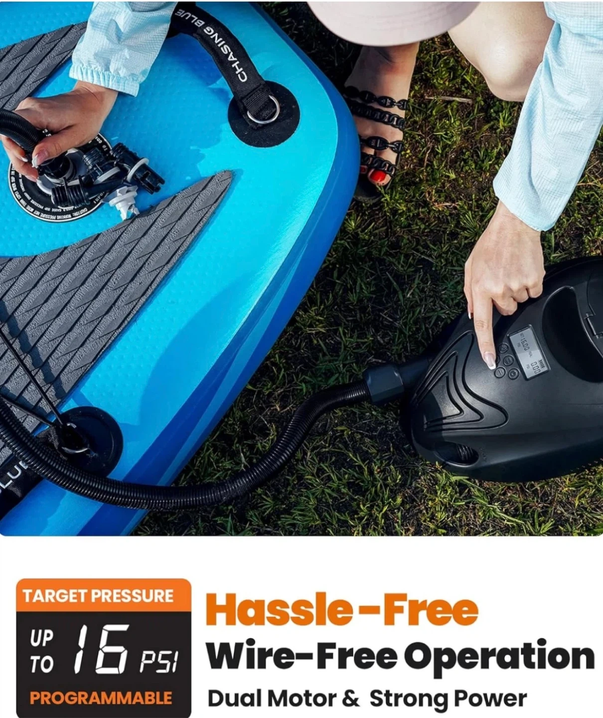 Experience the ease of inflating your stand-up paddleboard with the Outdoor Master Whale 16psi Rechargeable Sup Pump. Designed with convenience in mind, this inflation pump is a must-have accessory for any water sports enthusiast. Its durable construction and efficient design make it suitable for the rigours of regular use, whether you're paddling through calm lakes or surfing through choppy seas. Crafted by Outdoor Master, a trusted brand in water sports equipment, this pump comes as a single unit without the clutter of custom bundles or modifications. Made in China, the Whale 16psi Sup Pump is a reliable and robust choice for paddlers looking for a seamless inflating experience, ensuring your board is always ready for your next adventure. 📍 Pickup in North york Delivery available for extra 1430