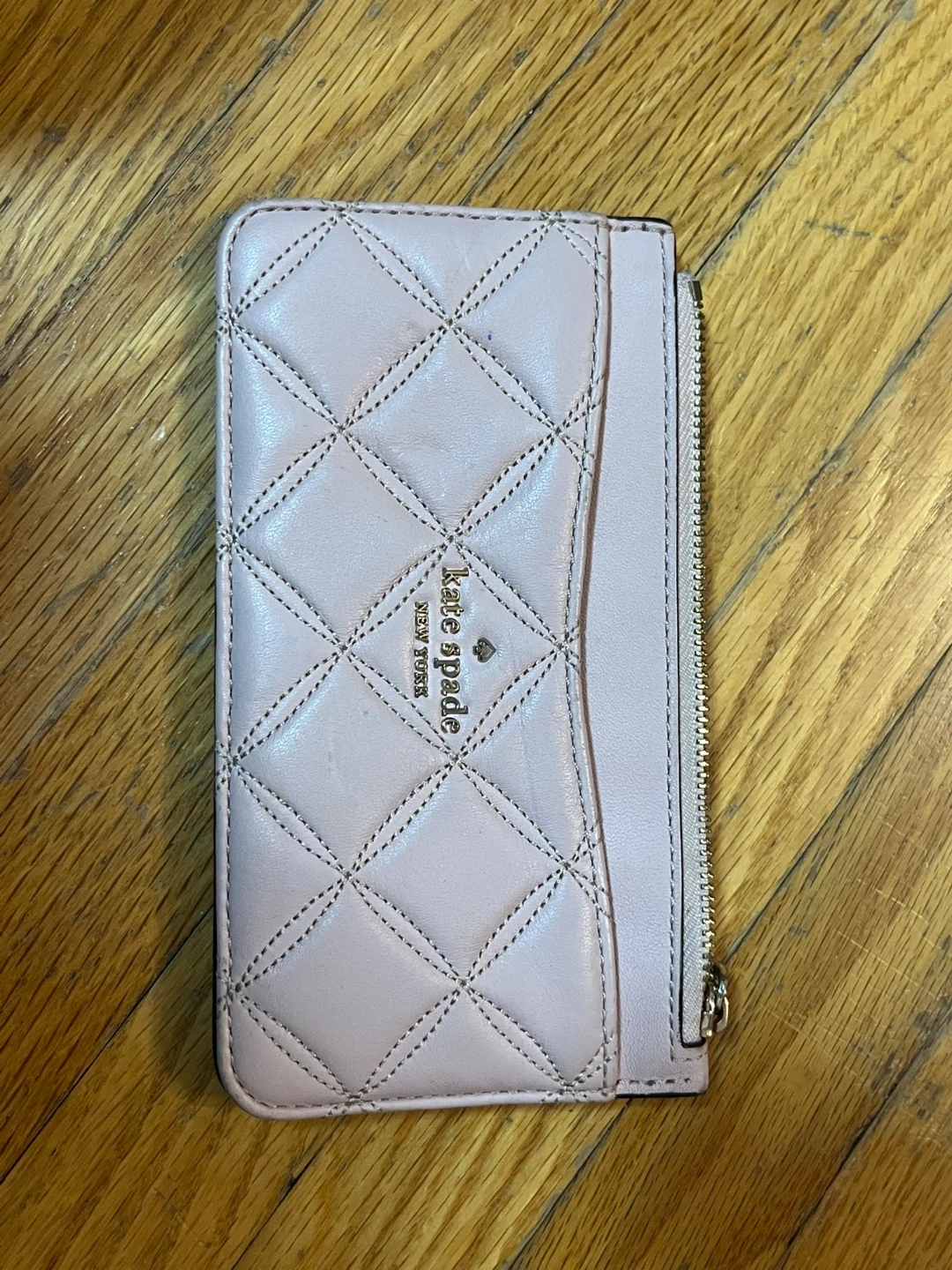 Selling a cute Kate Spade card holder in a lovely pink colour! It has several card slots and a zippered compartment for change or small items. Perfect for keeping your essentials organized and easily accessible. It's in great condition and ready for a new home!