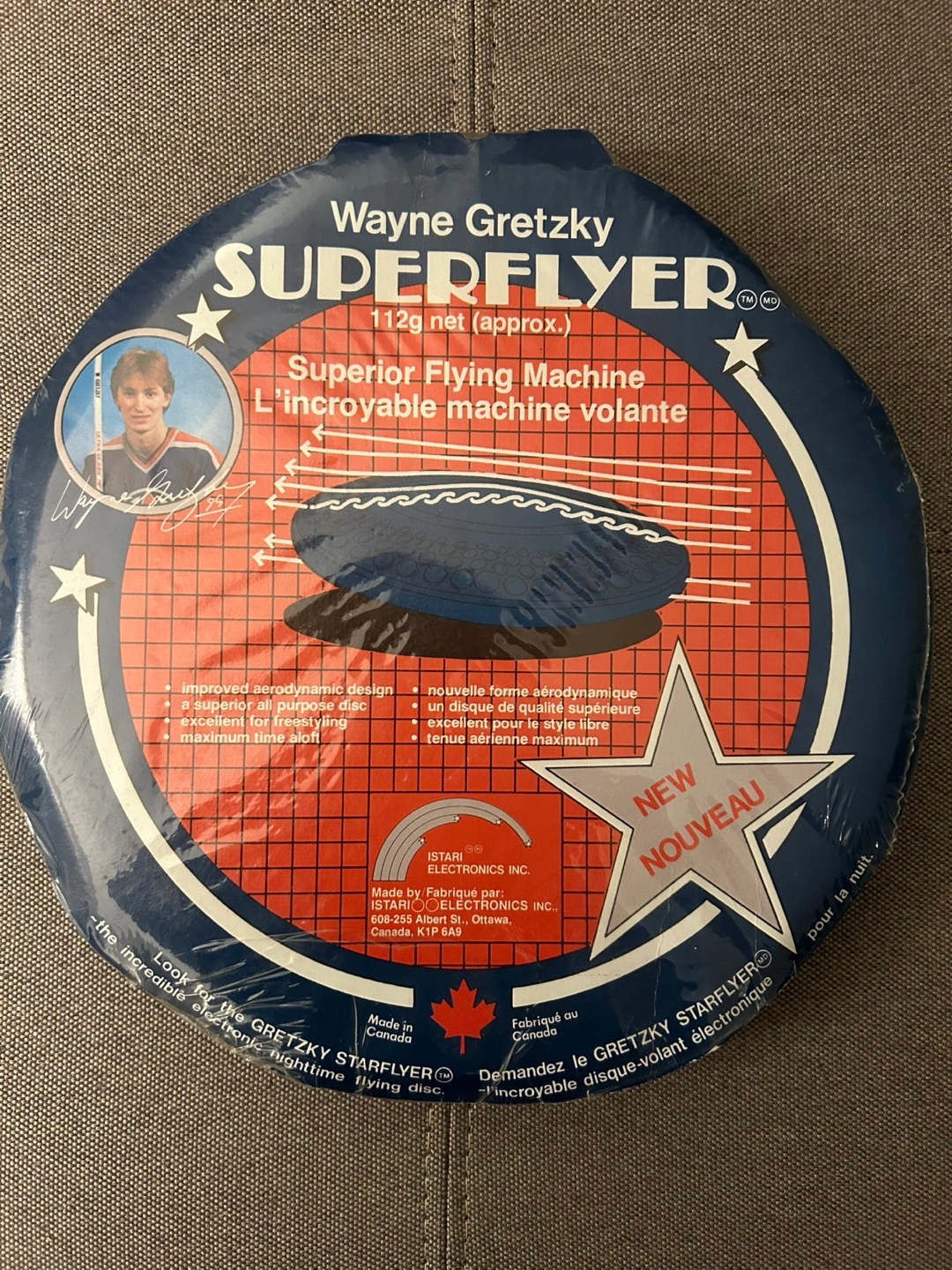 Selling a brand new Wayne Gretzky Superflyer! It's a superior flying machine, perfect for some freestyle fun. It has an improved aerodynamic design and weighs approximately 112g. Made in Canada by ISTARI ELECTRONICS INC