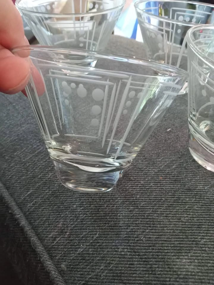 Stunning vintage martini glasses. Etched design. Unique. Great gift or conversation pieces.