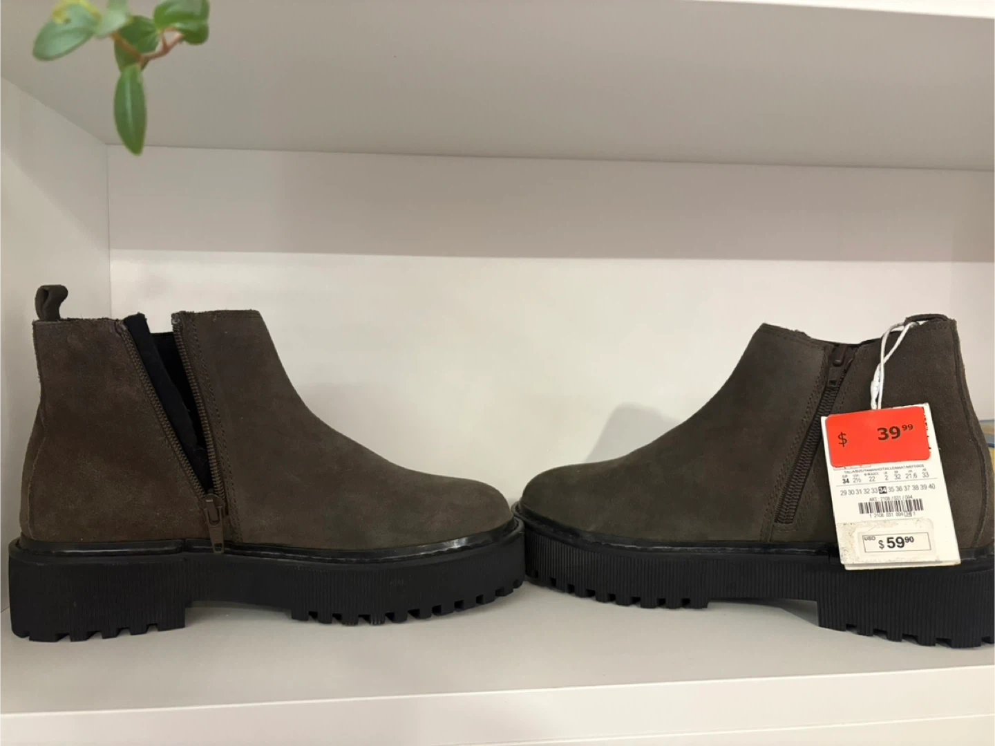 Buy & SellZara Brown Suede Chelsea Boots, Size US2.5Zara Brown Suede Chelsea Boots, Size US2.5$17Zara Chelsea boots in a lovely dark gray suede! They feature a chunky platform sole and a convenient side zipper. New with tag, size is US 2.5.0 chats·0 favorites·35 viewsSELLERRoxanaSouthwest Calgary100 reviewsWHERE TO MEETBridlewood