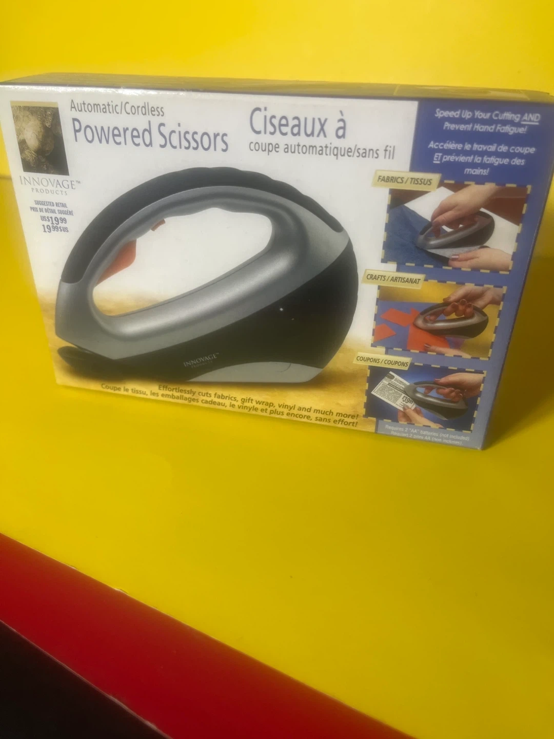 Check out these brand new Innovage Automatic Cordless Powered Scissors! They effortlessly cut fabrics, gift wrap, vinyl, and much more! The flat bottom ensures smooth gliding on any tabletop, and the easy push-button operation makes it super simple to use! Perfect for all your crafting needs
