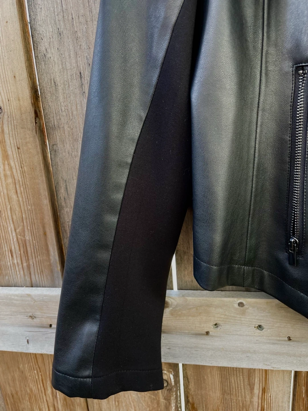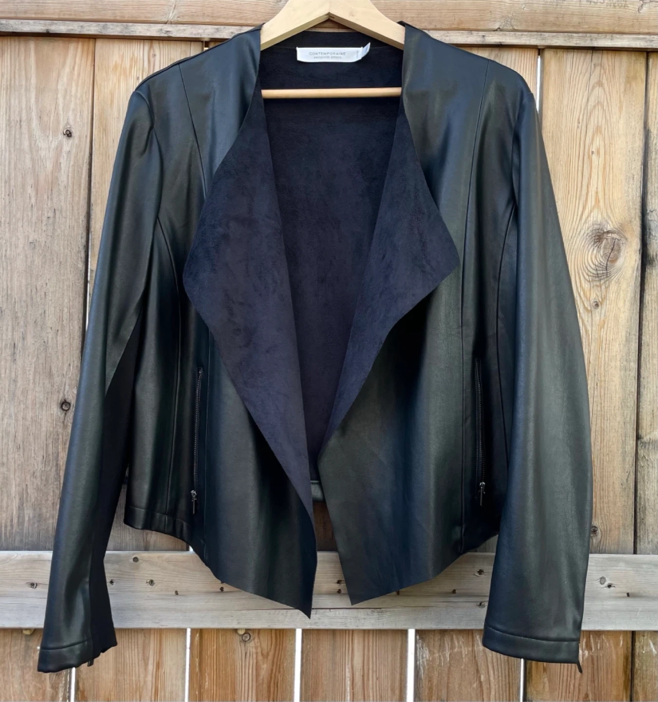 Stylish Contemporaine black faux leather jacket! It's in great condition, was only worn a few times.