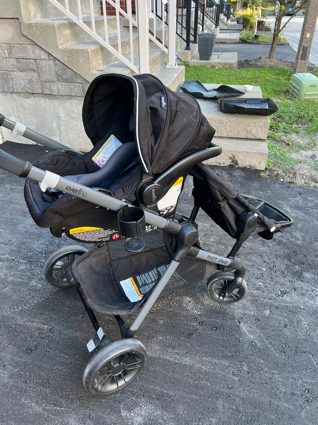 Selling an Evenflo Pivot Xpand travel system stroller. It's in good condition and ready for a new family. This versatile stroller is perfect for growing families and offers multiple configurations. It's a reliable and convenient option for navigating city streets or park trails!