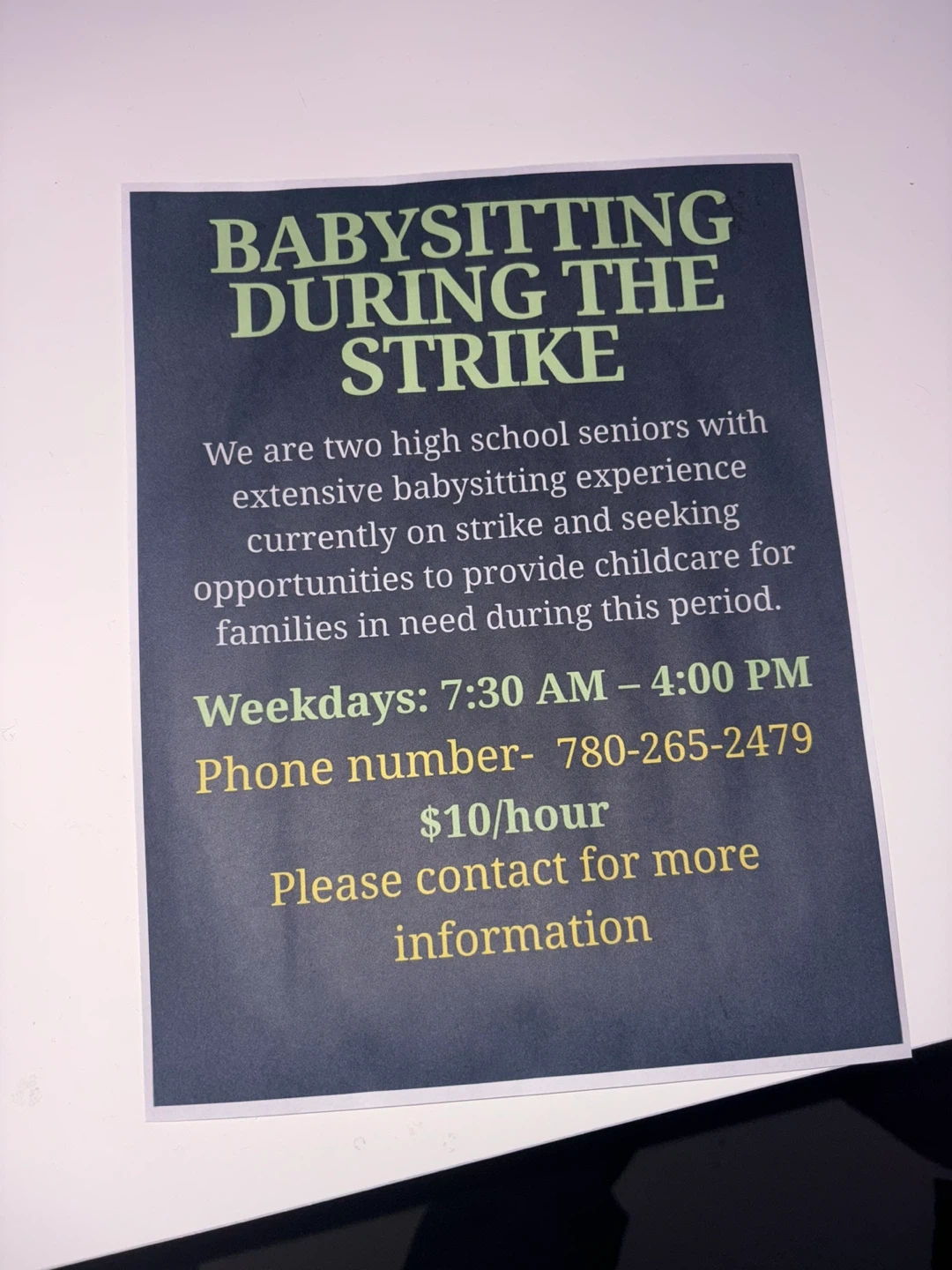 I am a high-school senior looking for parents in need of childcare during the strike!