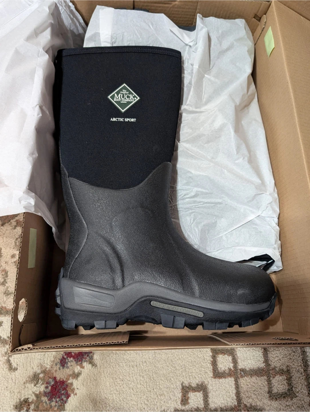 26Selling a brand new pair of Muck Boot Arctic Sport boots in black! These are a men's size 11 US. They're still in the original box and ready for a new home