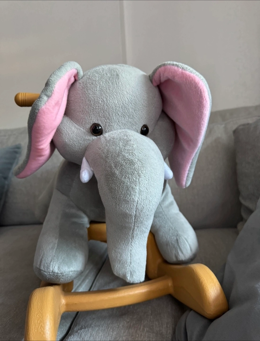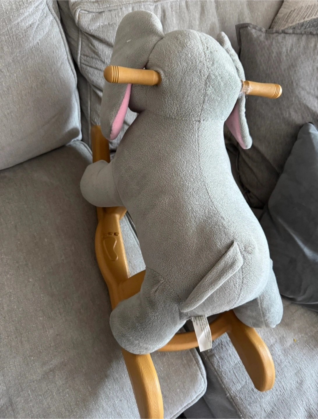 Selling a cute rocking elephant plush toy! It's in great condition and ready for a new home. Perfect for toddlers and young children who love to rock and play! It used to make an elephant noise but the button doesn’t seem to work anymore (this is a thrifted item!)
