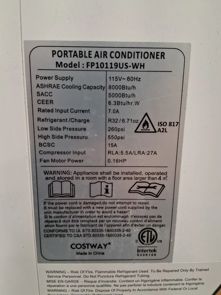 Keep cool this summer with this Costway portable air conditioner, perfect for small to medium-sized rooms, with an 8000 BTU cooling capacity. This unit is used but in good condition and ready to use.