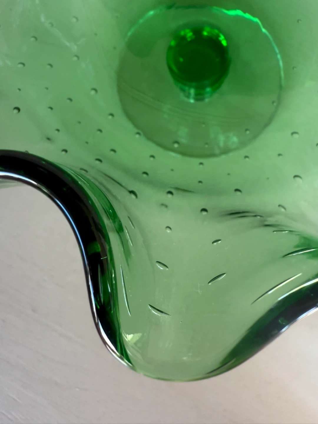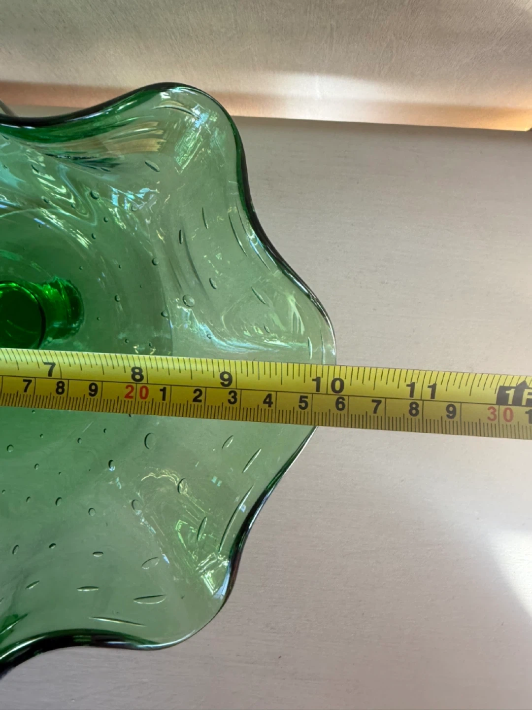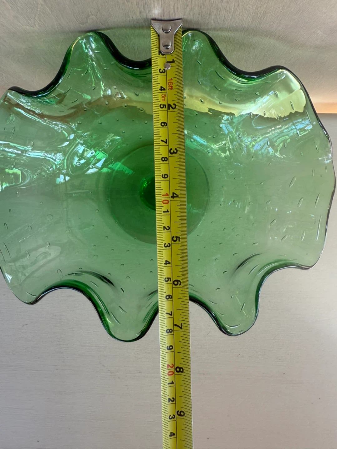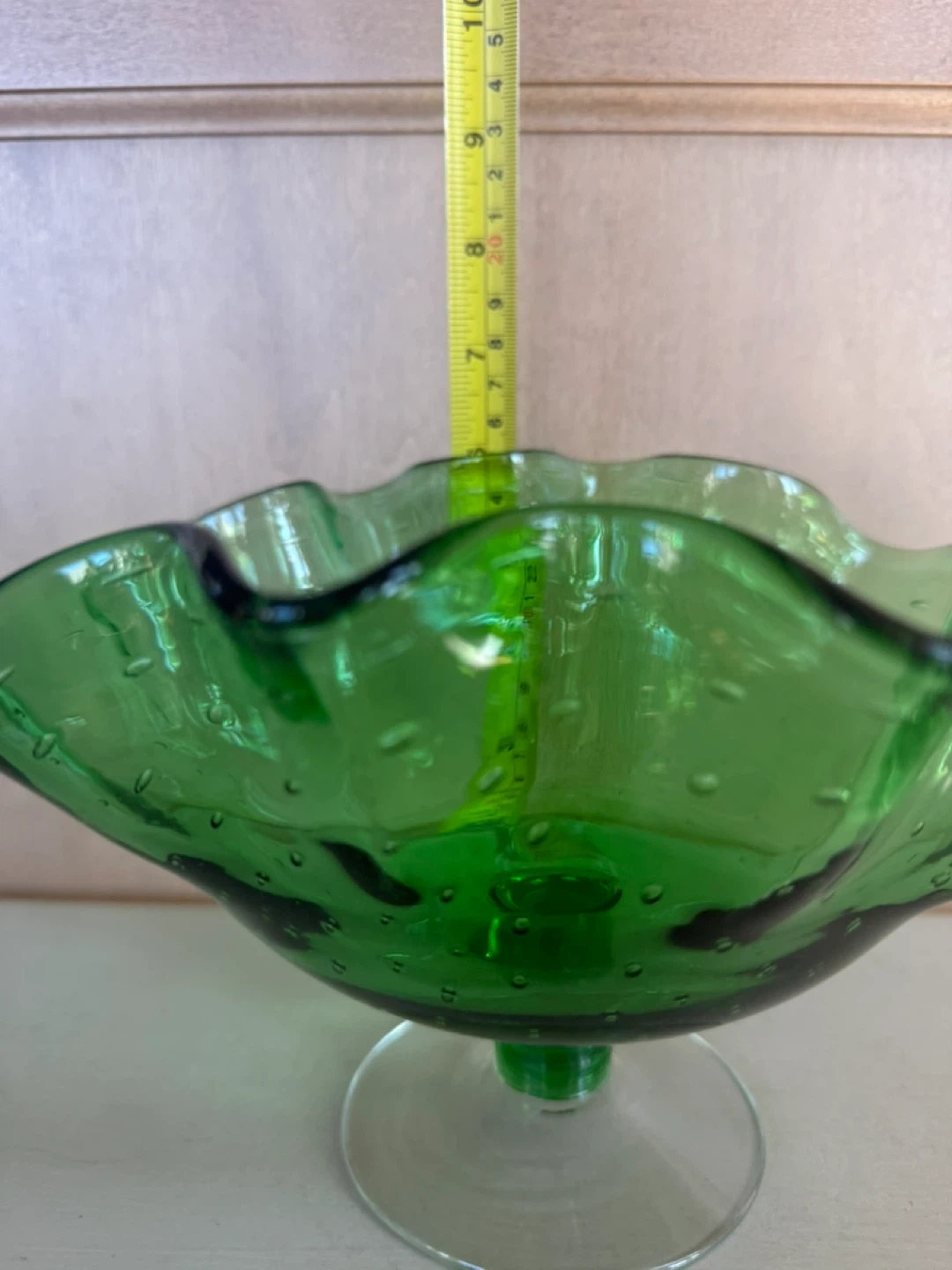 75Selling a lovely MCM green glass with controlled bubbles pedestal bowl! It's in great shape with no damage noted. Would look beautiful as a centrepiece or for serving. Please see photos for size & condition. Cash and pick up only in W. Hillhurst NW. Thanks for looking!