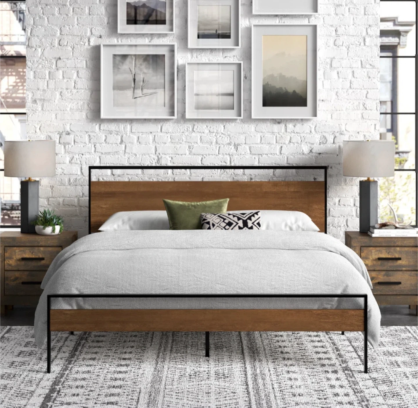 🧡 Wood and Metal King Size Platform Bed Frame and Mattress