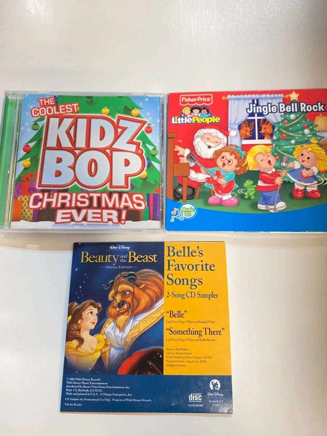 Selling Disney Beauty & the Beast, Kidz Bop, Little People CDs. All 3 included. Great Used condition.
