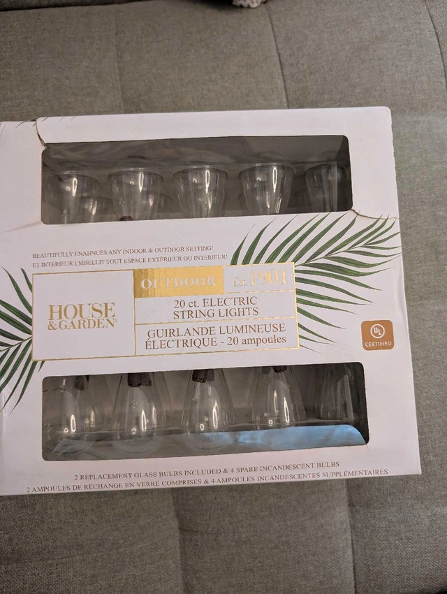 18Unopened box of 20 electric string lights for outdoor use. For Sale By: Owner
