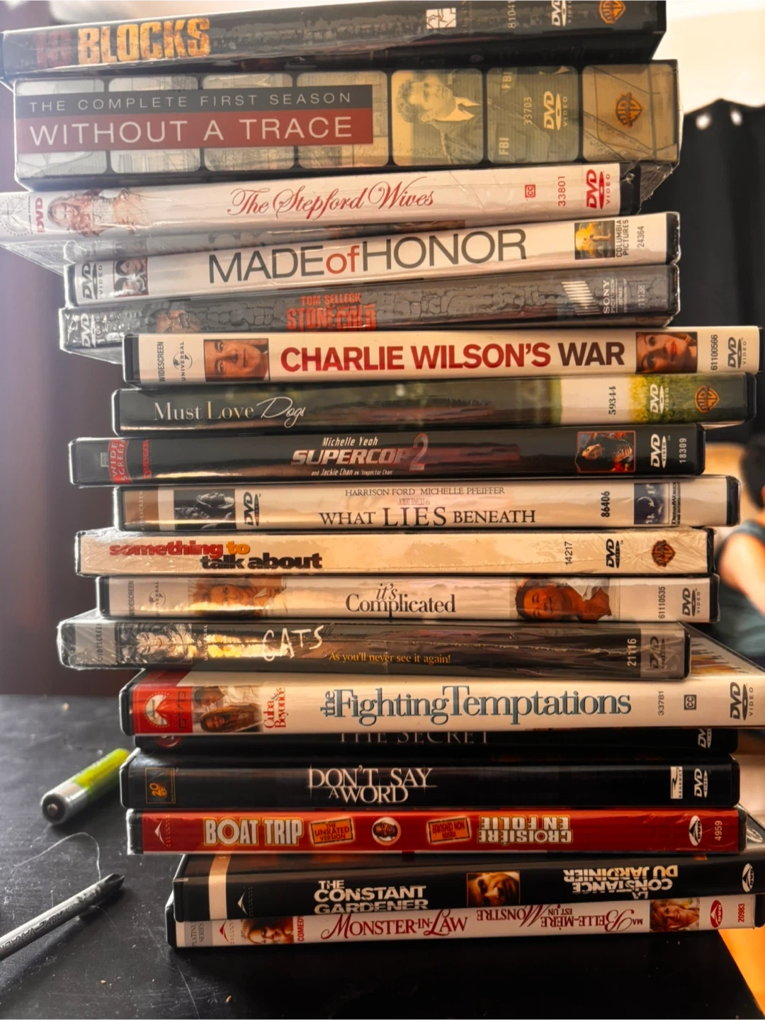 Selling a large collection of DVDs! There's a variety of movies in this lot, from thrillers and dramas to comedies and action flicks. Perfect for movie nights or expanding your home entertainment collection. Take a look at the pictures to see some of the titles included. Most are brand new never opened 1$ per dvd obo