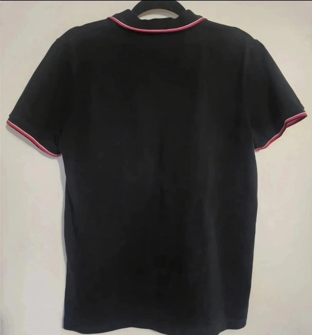 Selling a Diesel polo shirt in black. It features a red and white trim on the collar and sleeves.