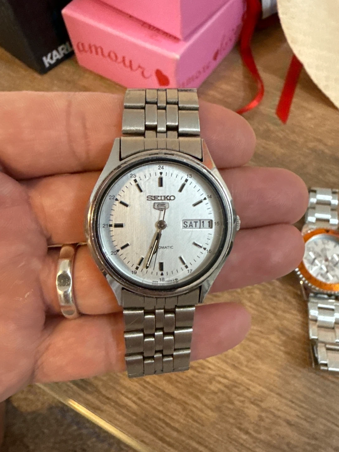 Selling a Seiko 5 automatic watch. It has a silver face and a stainless steel band. It's in good condition and ready for a new owner! PLEASE NOTE: Pickup in Tuscany area or meetup up at Market Mall. Price is firm. Cash only. Please send me a message with date/time to pickup.
