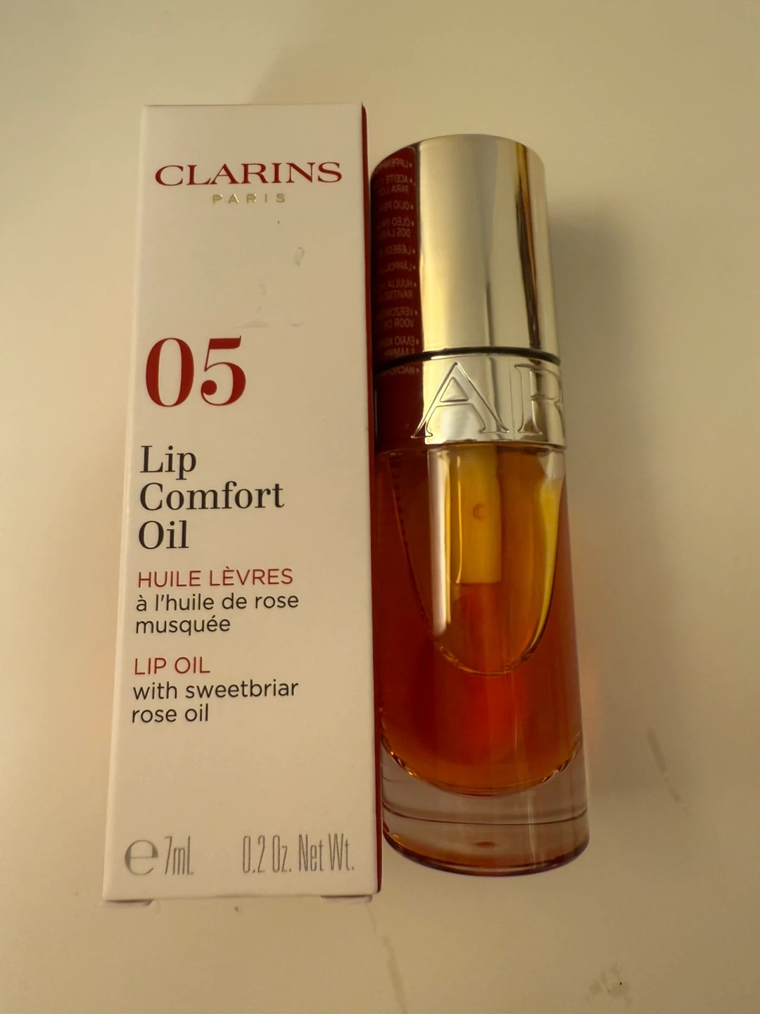 Selling a Clarins Paris Lip Comfort Oil in shade 05. It's a lip oil with sweetbriar rose oil. The bottle contains 7ml or 0.2 oz. of product. Perfect for adding a touch of comfort and shine to your lips!