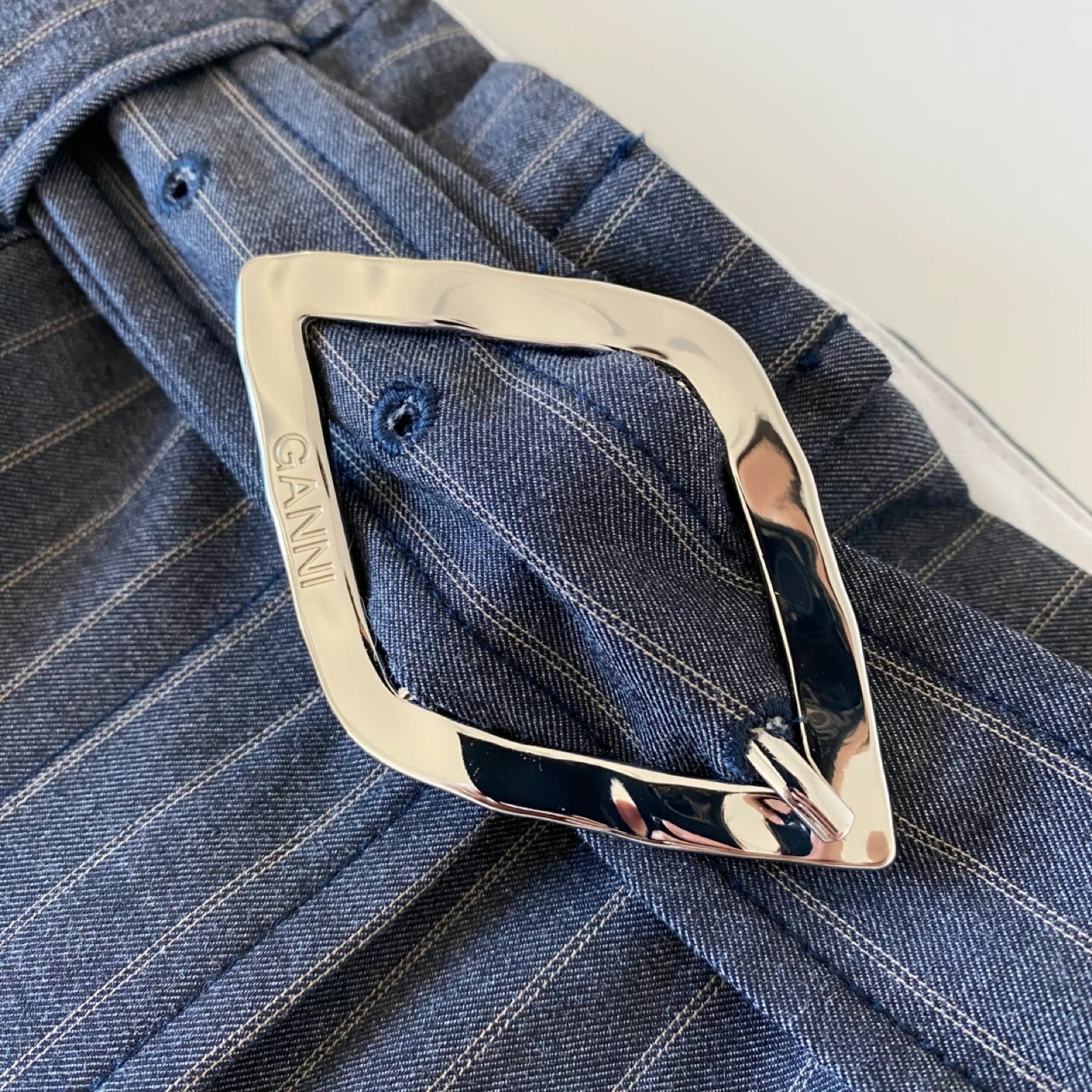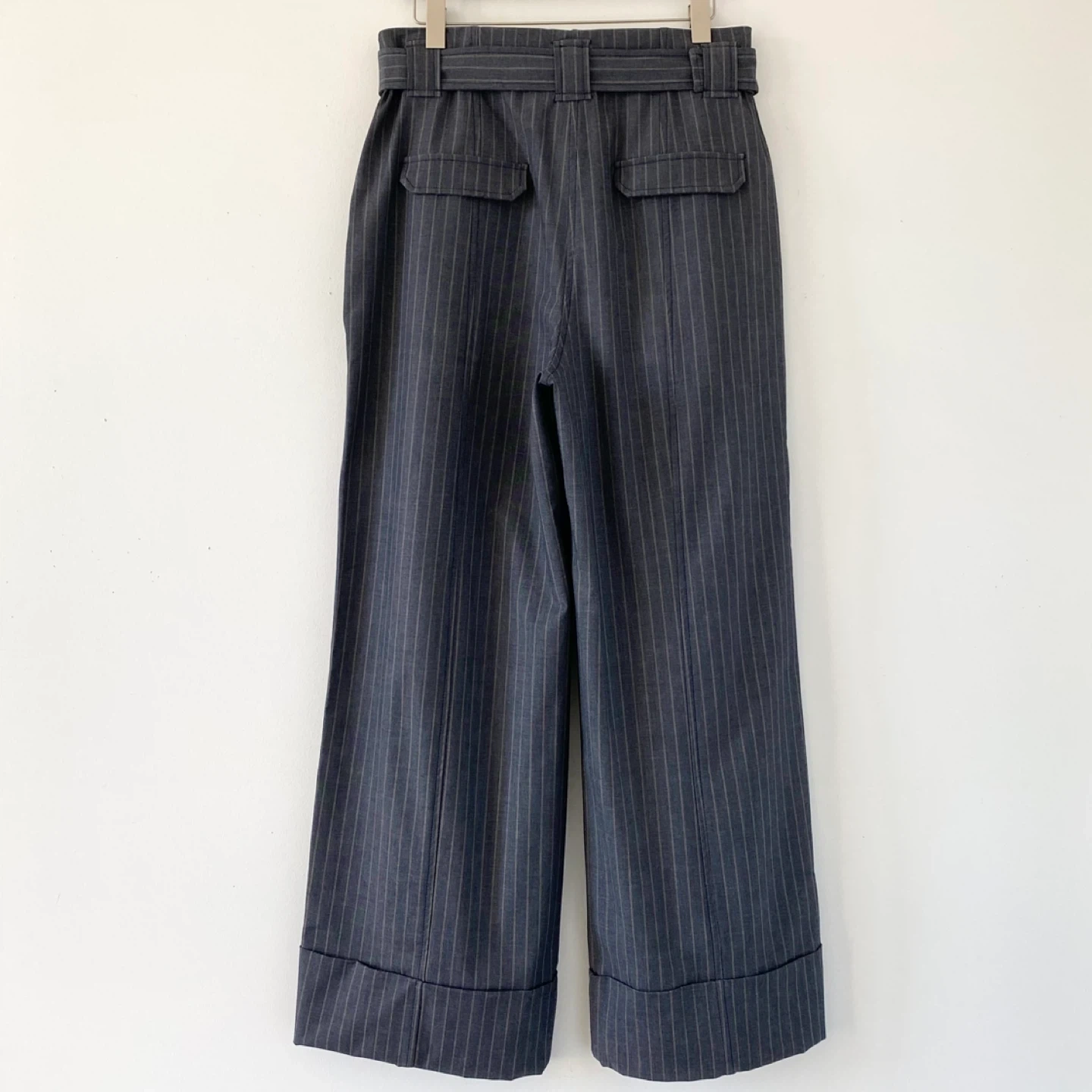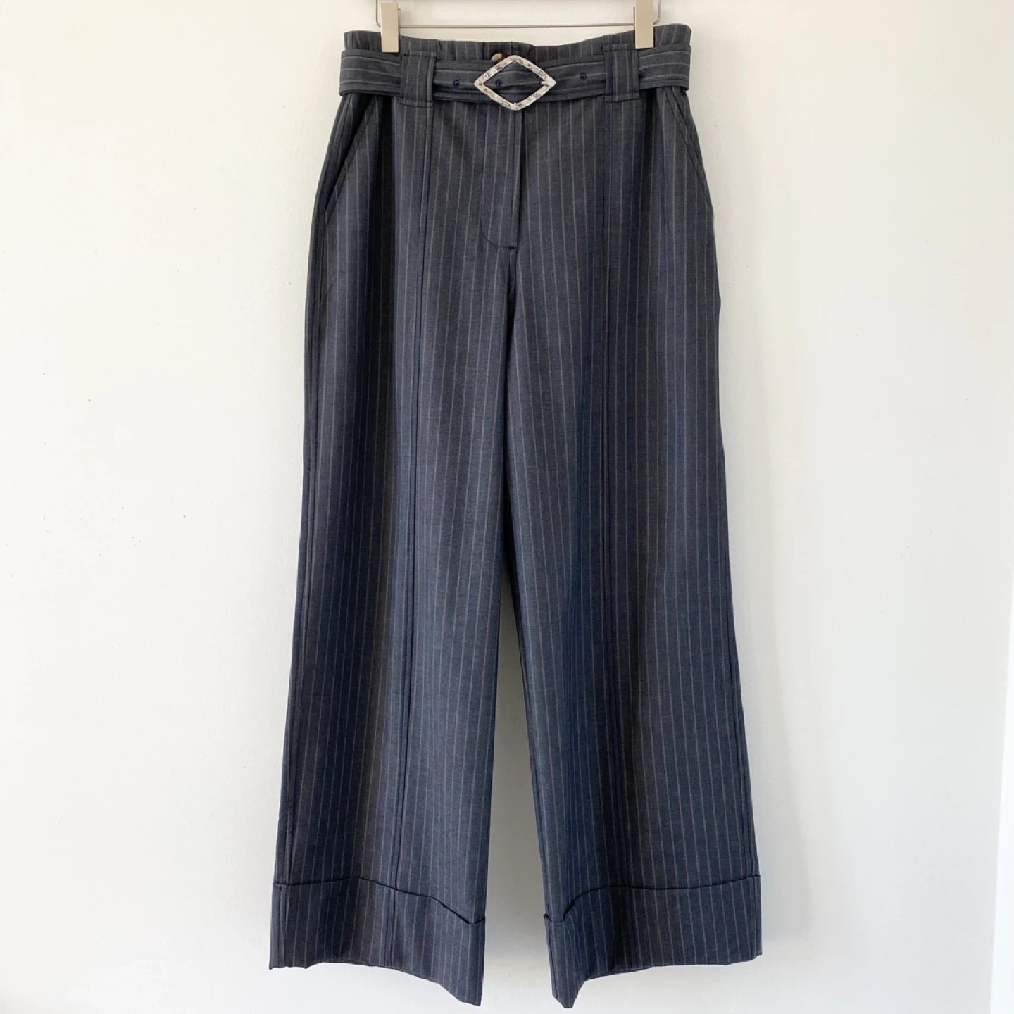 615Pick up only in Leslieville (Queen and Pape) Check out other listings! New without tags Ganni high waisted belted wide legs with wide cuffs. Made of medium weight striped fabric. Well made - inside seams are finished with bias tapes for extra clean finish and quality. In perfect condition. Size 40 Approximate measurements laid flat Waist 16.25” Rise 14.75” Inseam 29” Leg opening 11.75”
