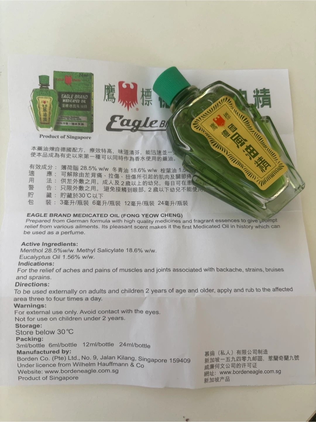 Eagle Brand Medicated Oil is a refreshing blend that helps relieve headaches and muscle pain. It's a staple in many households for its soothing properties and aromatic scent