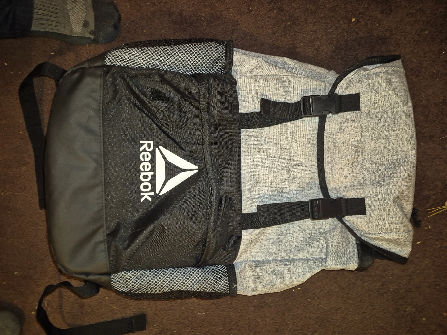 Selling a Reebok backpack in grey and black. It's in good condition and ready for a new owner. Perfect for school, work, or travel!
