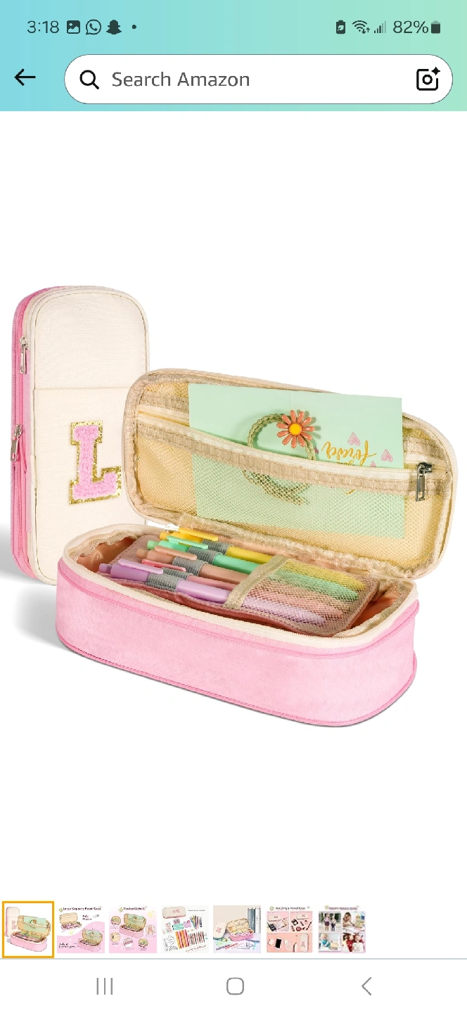 Keep all your pens and pencils organized with this large capacity pencil case! It features two zippers for easy folding and unfolding, and an inner bag for smaller items. The high-quality canvas material and cute initial design make it both durable and stylish. 2 "L" and 1 "V" left. $5 each.