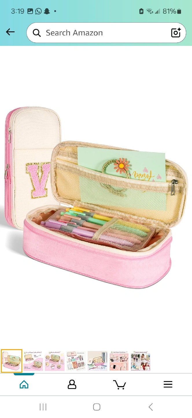 Keep all your pens and pencils organized with this large capacity pencil case! It features two zippers for easy folding and unfolding, and an inner bag for smaller items. The high-quality canvas material and cute initial design make it both durable and stylish. 2 "L" and 1 "V" left. $5 each.