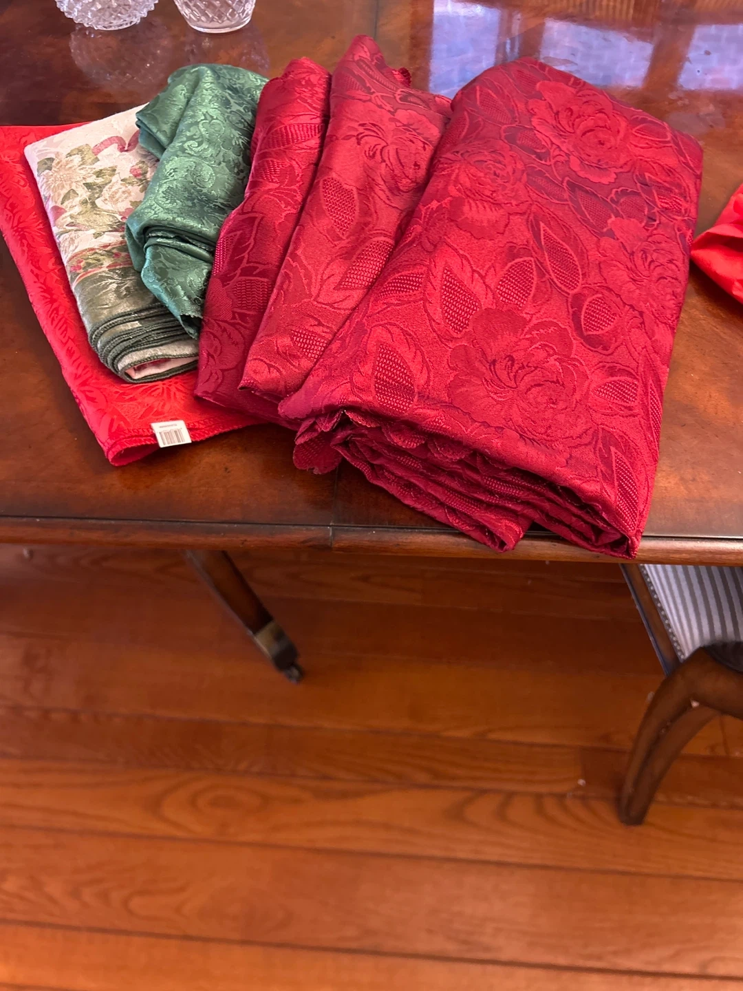 Selling a set of assorted tablecloths in various colours and sizes. They are in good condition and would be perfect for adding a touch of elegance to your dining table or for special occasions!