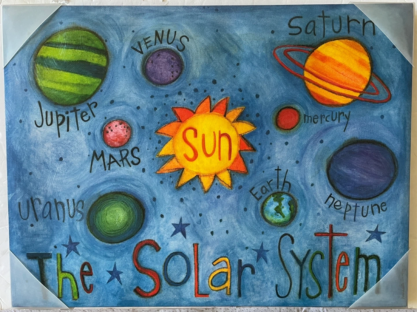 This is a cute canvas wall art featuring the solar system. Made in Canada.