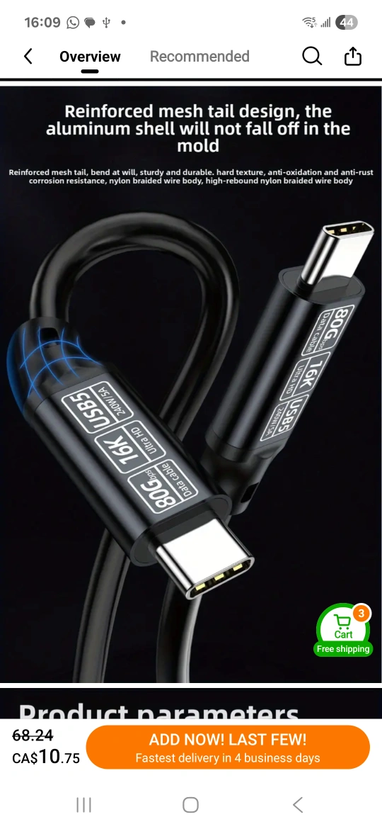 307100% Works, 100% New. Brand New, $33 Length:39.37 inch (=100cm) Thunderbolt 5 USB5 Full-featured Data Cable. TYPE-C to TYPE-C 80Gbps Data Transfer 16K Screen Casting Video Compatible with Thunderbolt 5/4/3 Supports 240W Fast Charging Suitable for Doingsation, MacBook, Thunderbolt 3, Monitors, for iPhone 15/16/17/for Samsung/Xi One-line multi-purpose entertainment office is more efficient, Hd video 16k60hz Extremely fast charging 240 W / 5A For laptop/mobile phone/tablet/fast charging. Data transfer: 80gbps USB5 is theoretically transferred 8G files in seconds, 80gbps high-speed stable transmission is 4 times faster than usb3.2, 16 times faster. Can Connect to car carplay Multi-screen expansion multi-screen sharing The chrysanthemum chain connection can expand multiple display screens. the picture quality is still clear and smooth, meeting the needs of multi-screen office/entertainment. Charging AND Data transmission two in one. Reinforced mesh tail design, the aluminum shell will not fall off in the mold Reinforced mesh tail, bend at will, sturdy and durable. hard texture, anti-oxidation and anti-rust corrosion resistance, nylon braided wire body, high-rebound nylon braided wire body ##### First Come First Serve, No holding for anyone who says I am comimg to getl it. Only for serious buyer. What You See Is What You Get (WYSWYG) Sold AS IS condition and no return policy after the point of check out. Accept CASH only AND face to face trade ONLY. DO NOT accept PayPal or e-cheque! If ( you are a Scammer, please stay away from me by God's sake! Jesus Christ is God and can be your saviour too.) Location to pick up: (use Google Map copy and paste the below corrdinates to come): 43.806683,-79.456018 Or search by address: 735 New Westminster Drive #88, Thornhill, ON,L4J 7Y9 (***please noticed that I am not living at unit #88, but there is a small parking area next to an entrance of a basement carpark, I need to walk out there to meet you in 2 mins***) Or use this link in Google Chrome and then allows Google Map Apps to lead you to come: https://maps.app.goo.gl/iybEFxbi3cHE7RqJA Please click into my profile listings to see which may also fit your needs. Scammer: God Jesus Christ protects me! HE can be your saviour too if you repent and return to God TODAY!