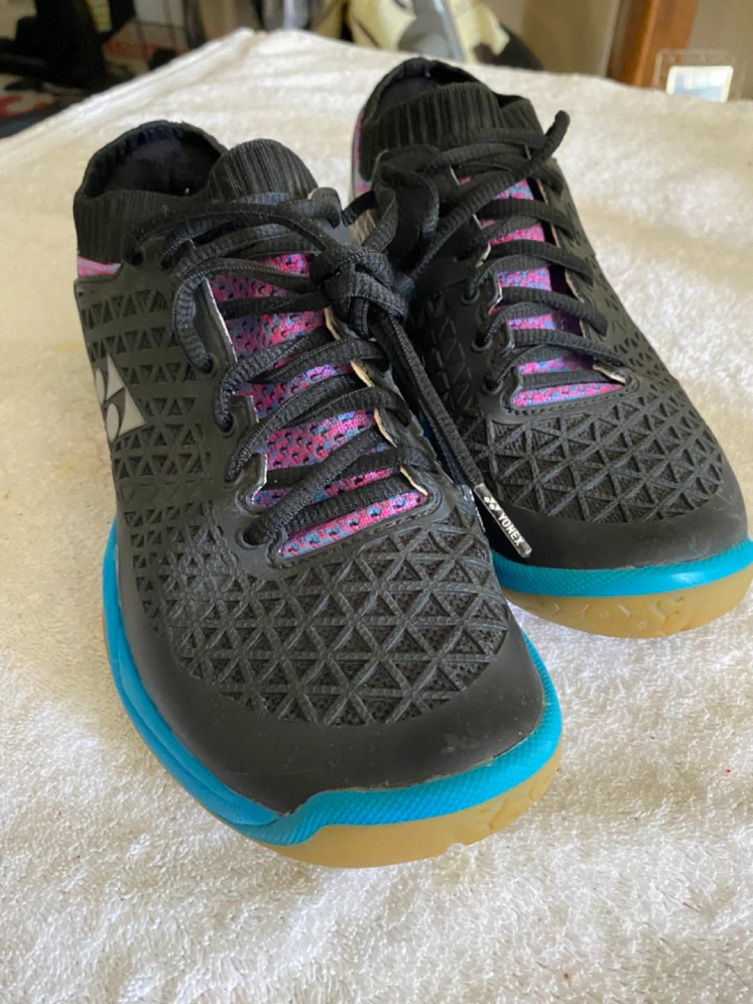 Selling a pair of Yonex Power Cushion Eclipsion Z badminton shoes. They are black with a blue sole and some accents. The size is US 6.5. They are in near mint condition and ready for your next game!