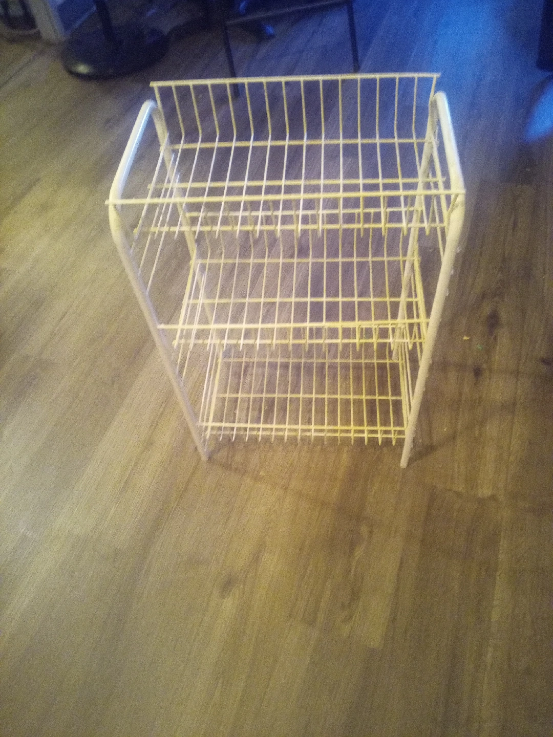 Selling a handy three-tier wire shelf rack! It's perfect for organizing items in your kitchen, bathroom, or any space that needs a little tidying up. It's in great shape and ready for a new home
