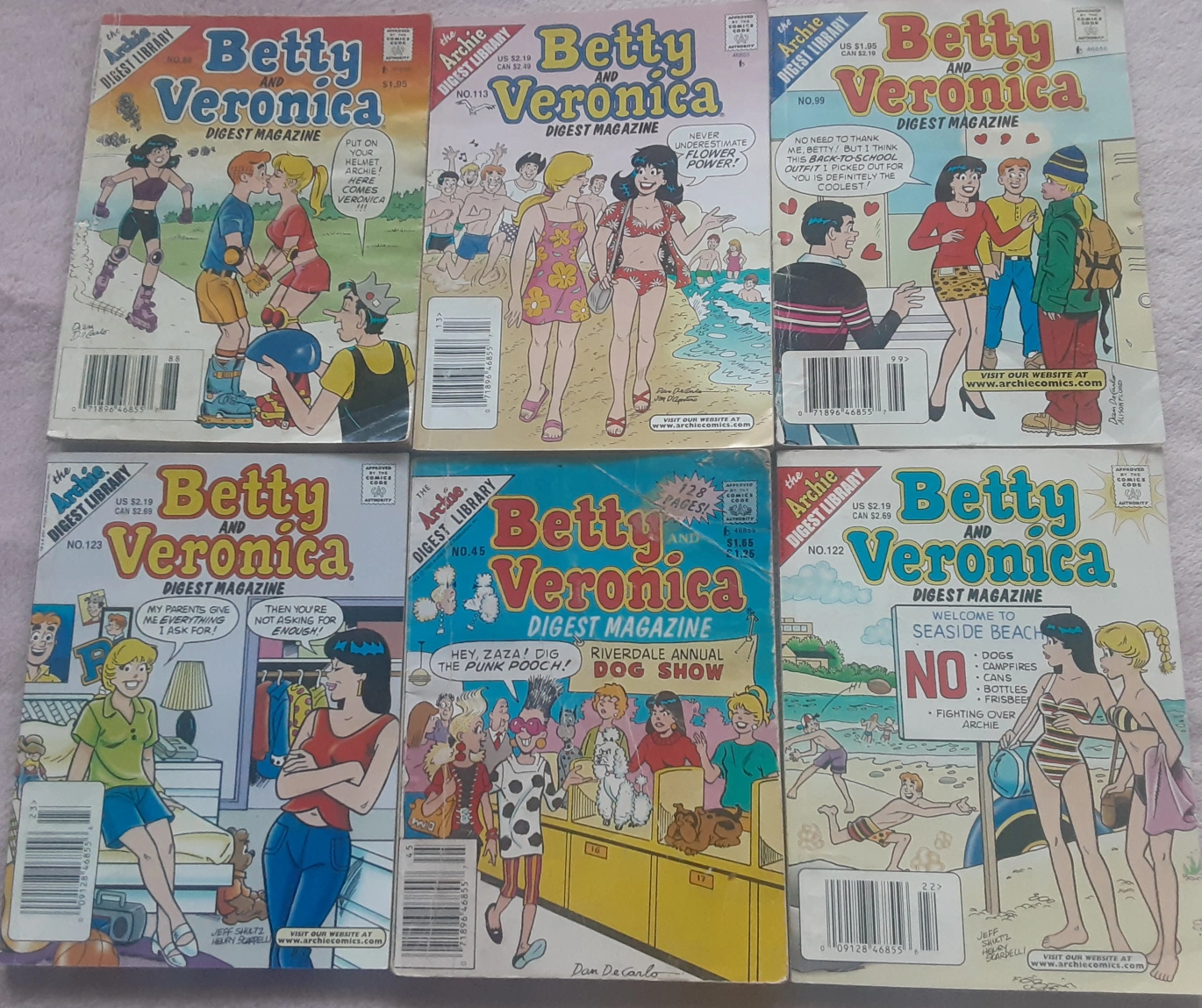 Selling a set of 6 Betty and Veronica digest magazines! They're from the Archie Digest Library series and feature classic stories and fun adventures. A great addition to any Archie Comics collection! (Lot of 6 Books for $5)