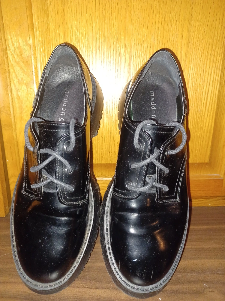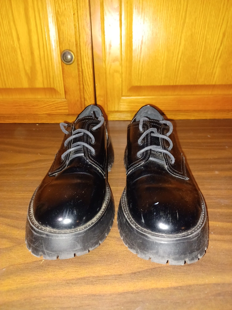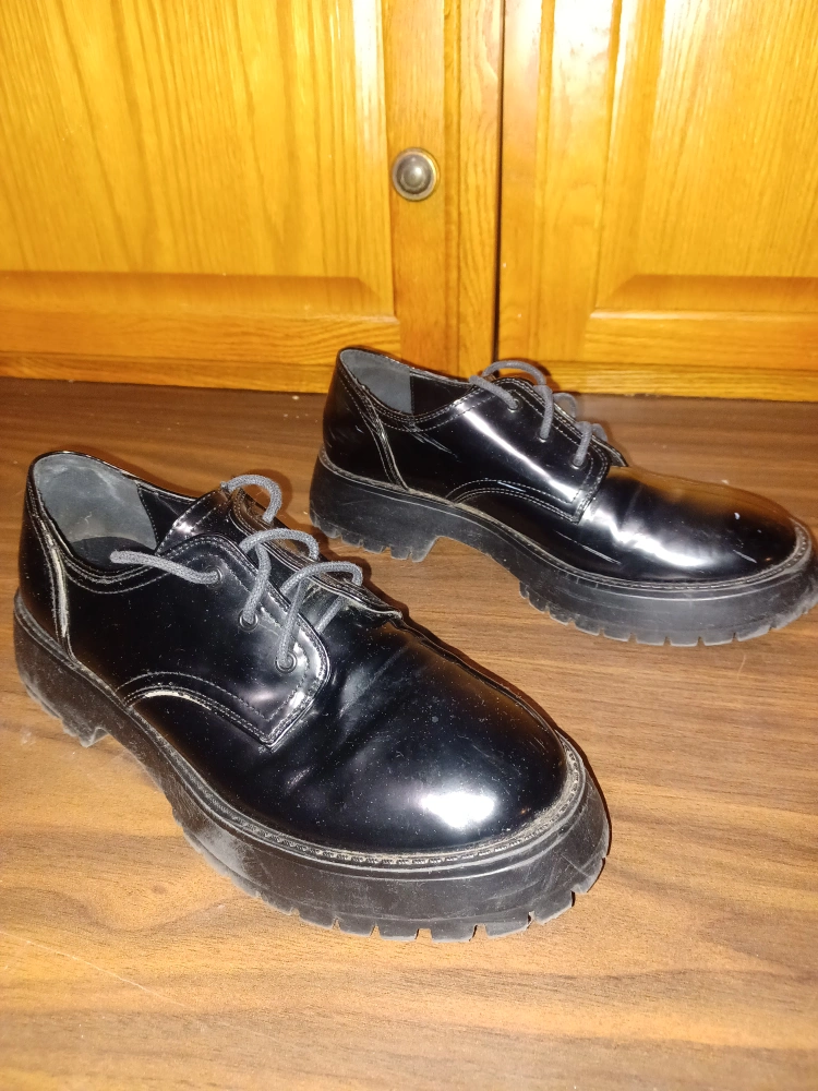 65Selling a pair of black platform oxford shoes in size 9. They are in good condition and have a cool, edgy look! Perfect for adding a bit of height and style to any outfit