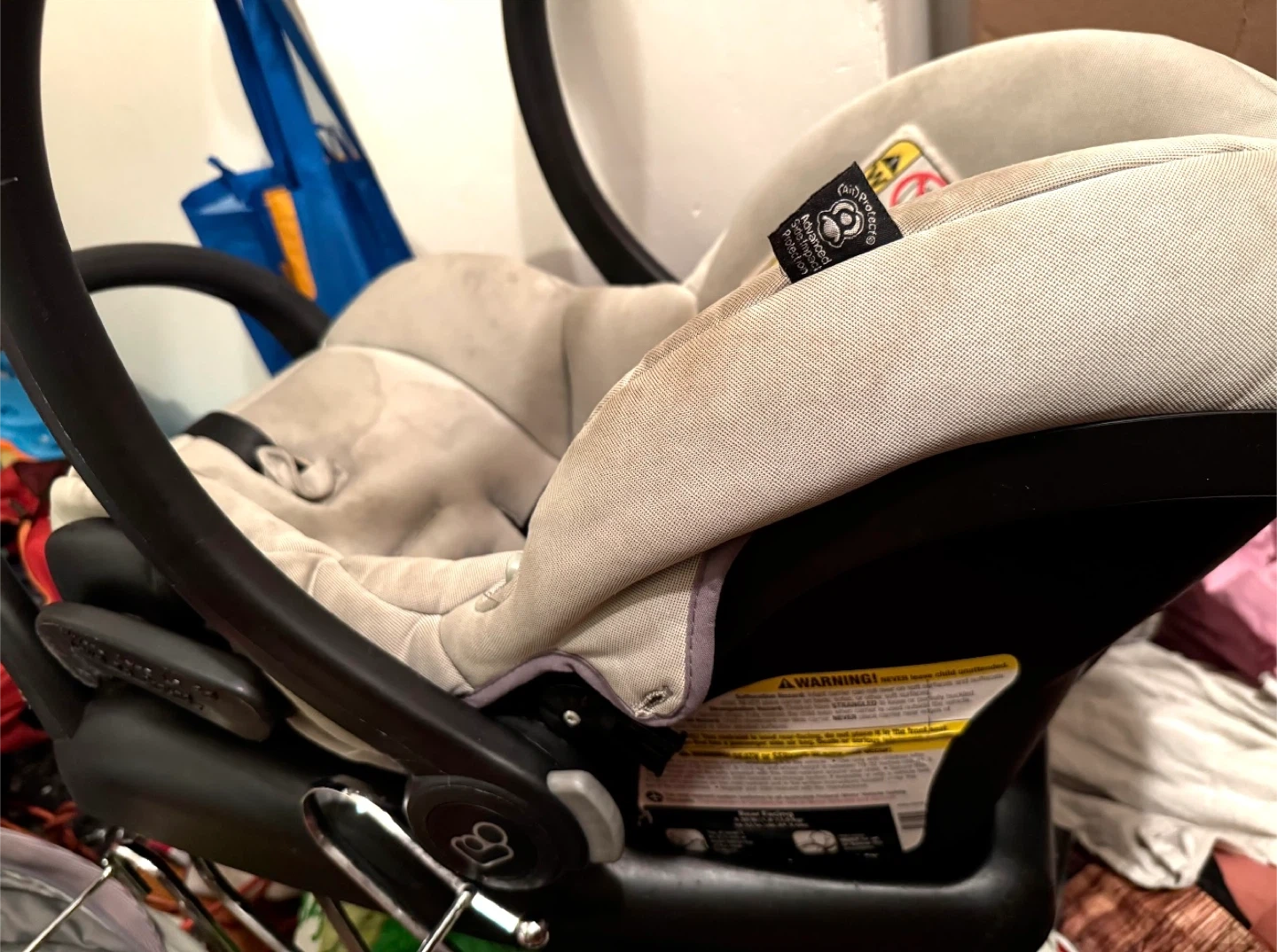 Selling an Evenflo infant car seat. It has some stains on the fabric, but is otherwise in good condition. Please see photos for details