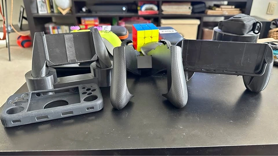 Generic, 3-D printed and silicone grips for: Nintendo Switch OLED (folding one) Anbernic RG353M Anbernic RG353V (grip and stand) Anbernic RG35XXH Too many grips and not enough consoles, as I’m purging collection.