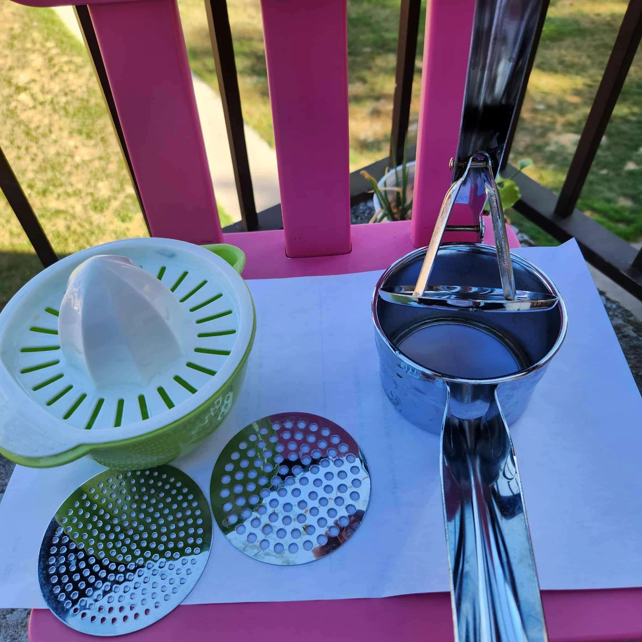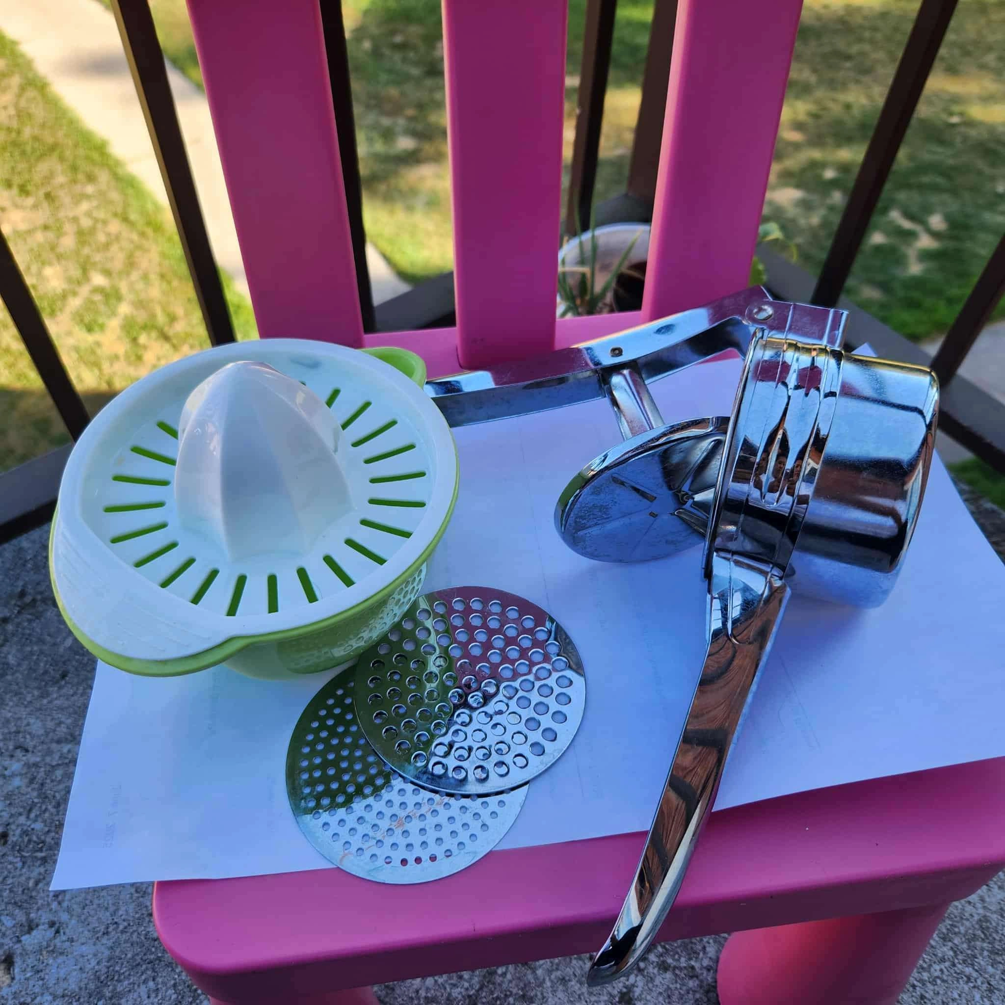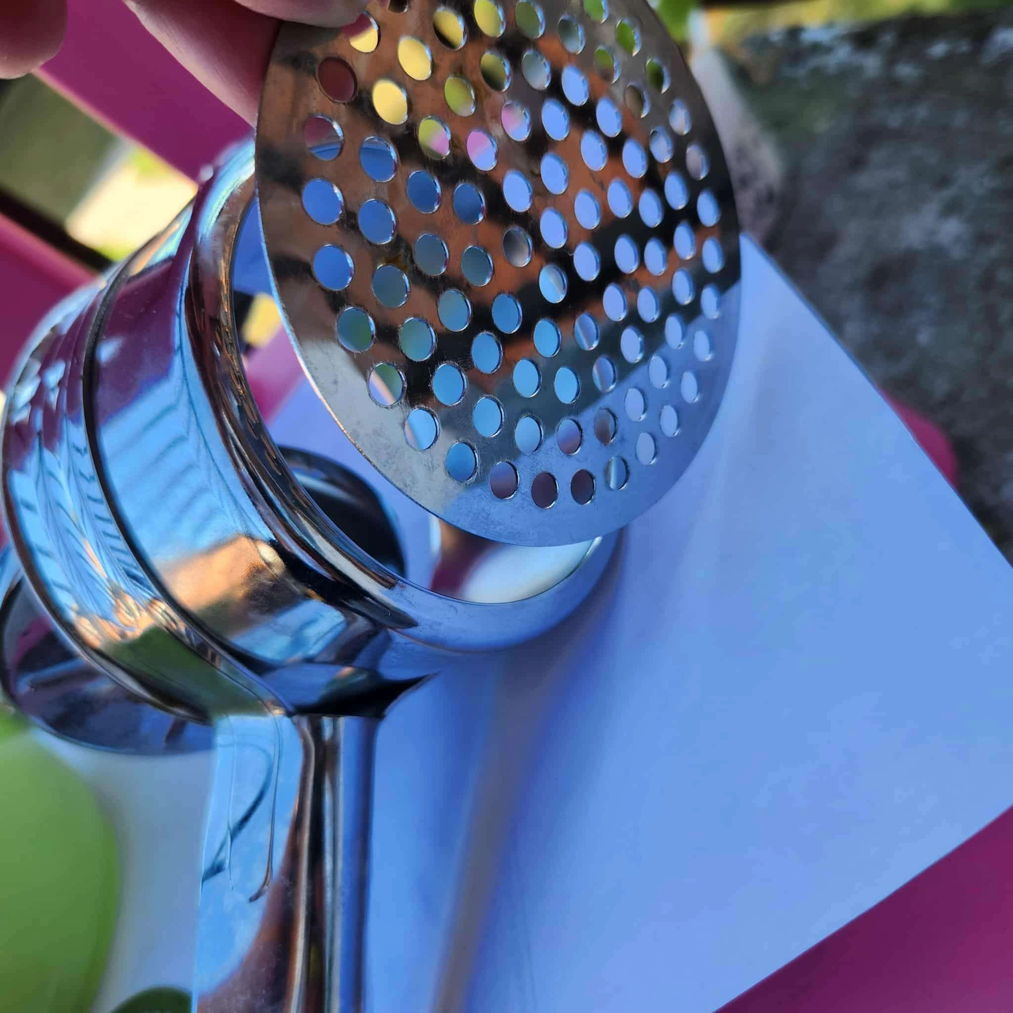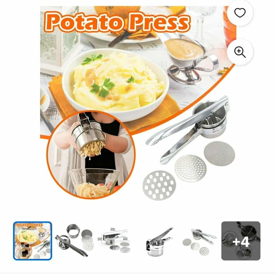 Typically made of stainless steel or heavy-duty plastic, a potato press consists of two long handles connected by a hinge. One handle has a perforated basket (the ricer), while the other has a flat pressing plate that fits inside the basket.