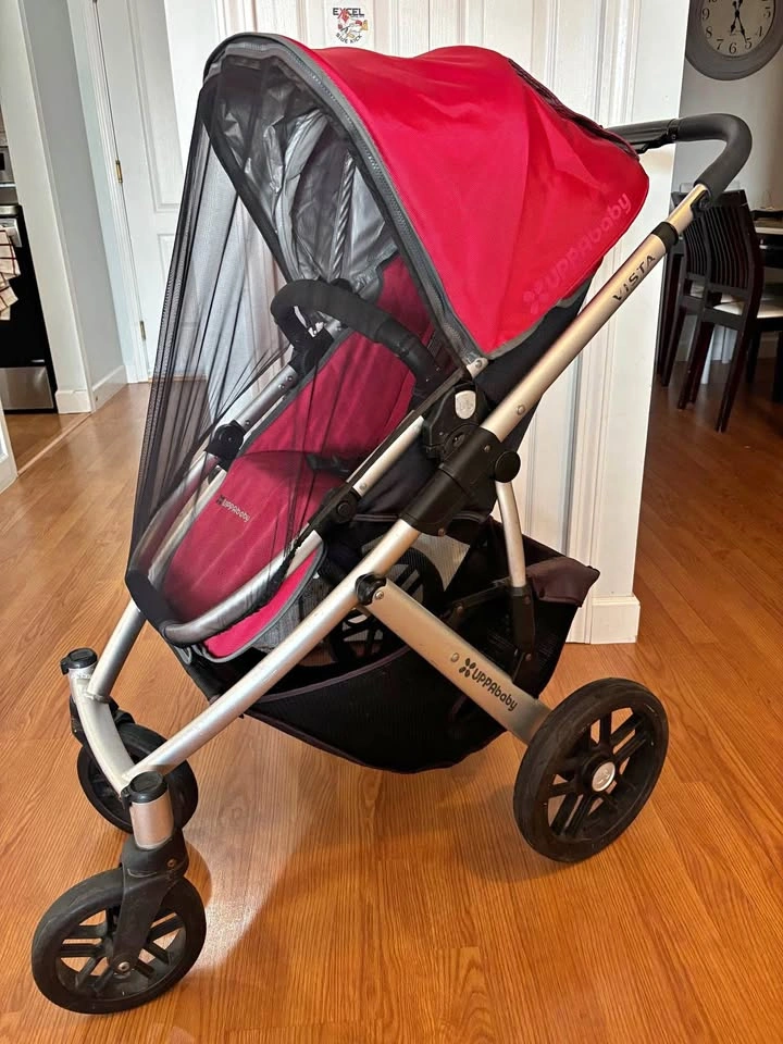 For sale: used Uppababy Vista stroller (2012 model) in good condition. Includes: Additional black seat insert Mosquito net Cup holder (Cup holder is a different brand, but it can be attached to the stroller handle) Pick up area: Glover Rd and Duncan Way, Langley The frame is very stable and smooth, but price is adjusted for a sqicky sound.