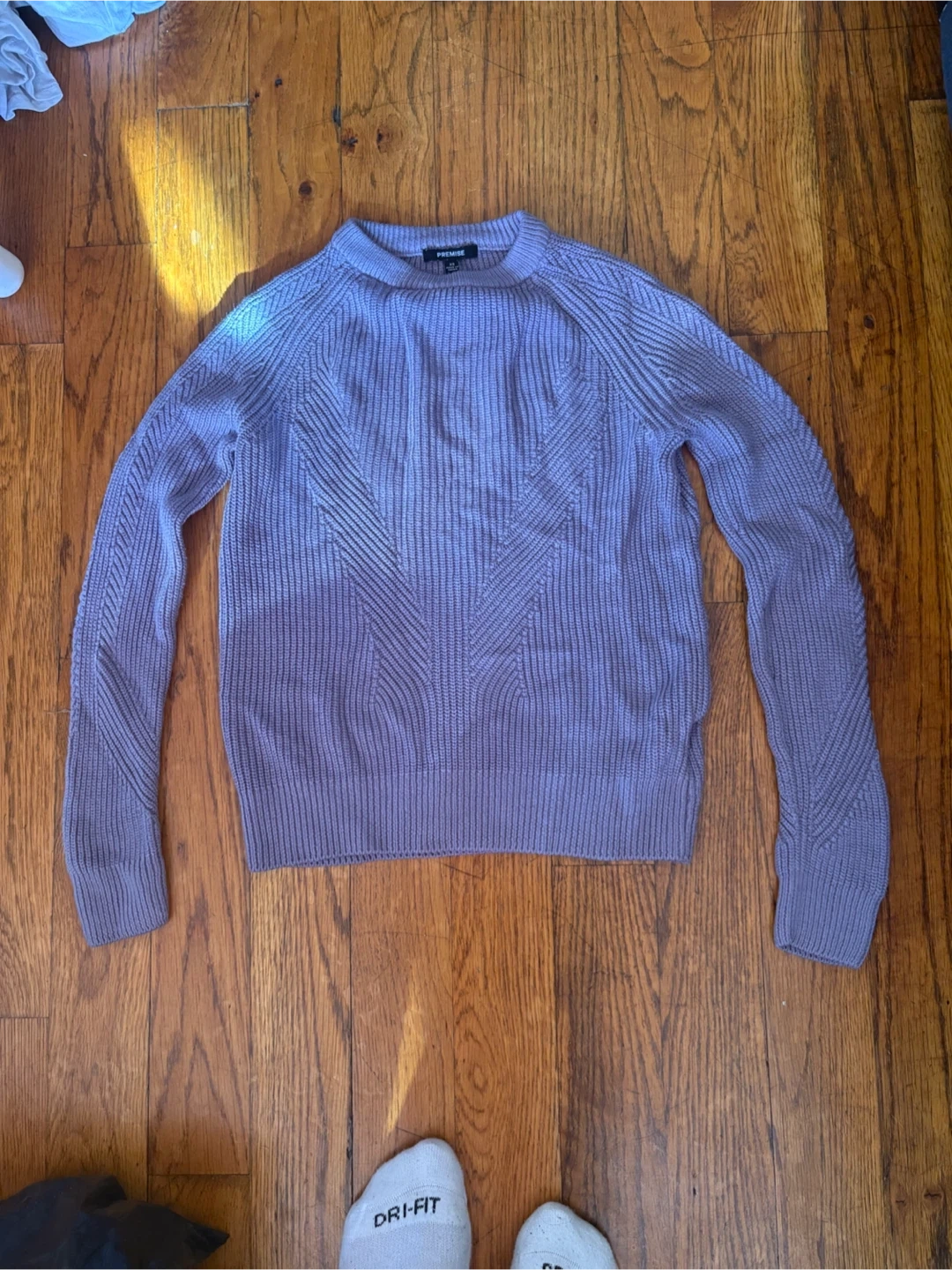 Here's a cute lavender knit sweater from Premise! It's super comfy and in great condition. Perfect for layering or wearing on its own