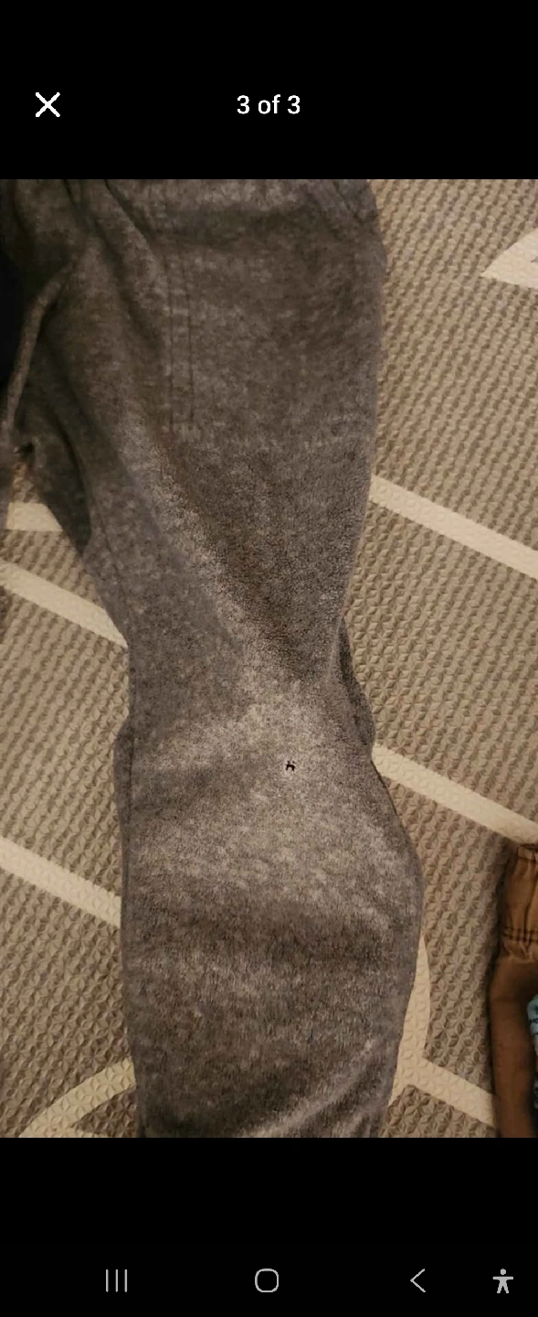 2 pairs are fleece, the Grey fleece has a tiny hole on the knee that could be patched/sewn
