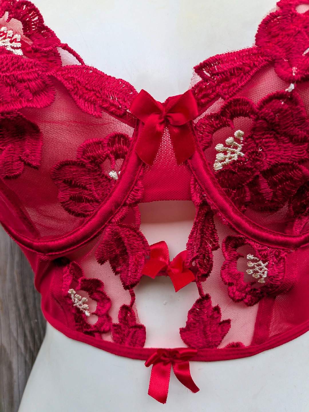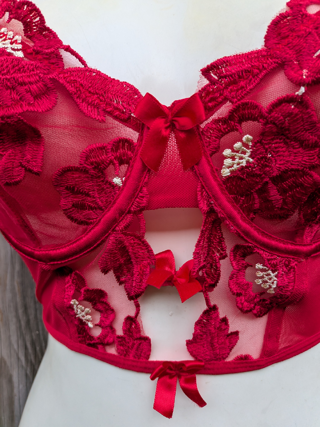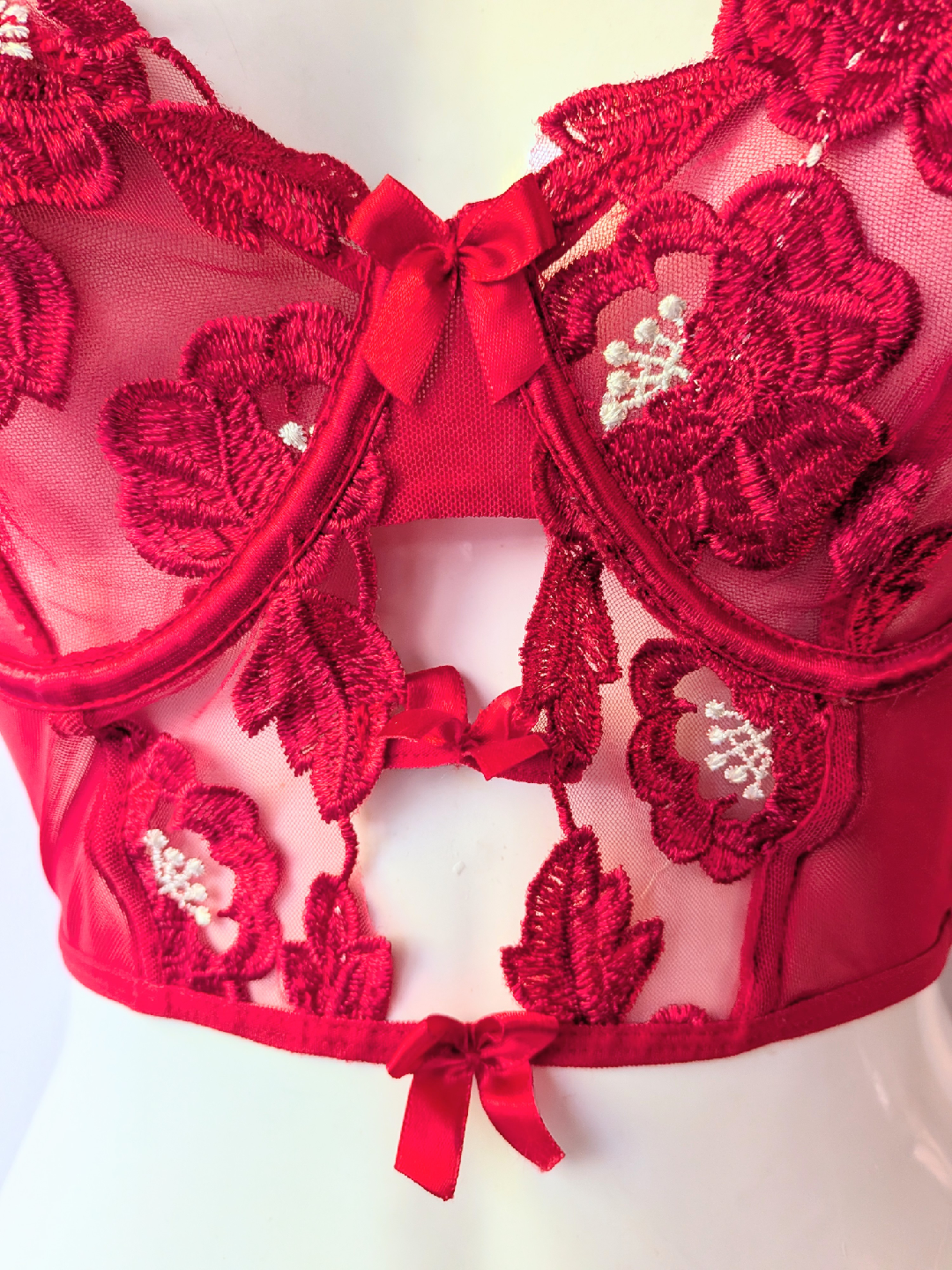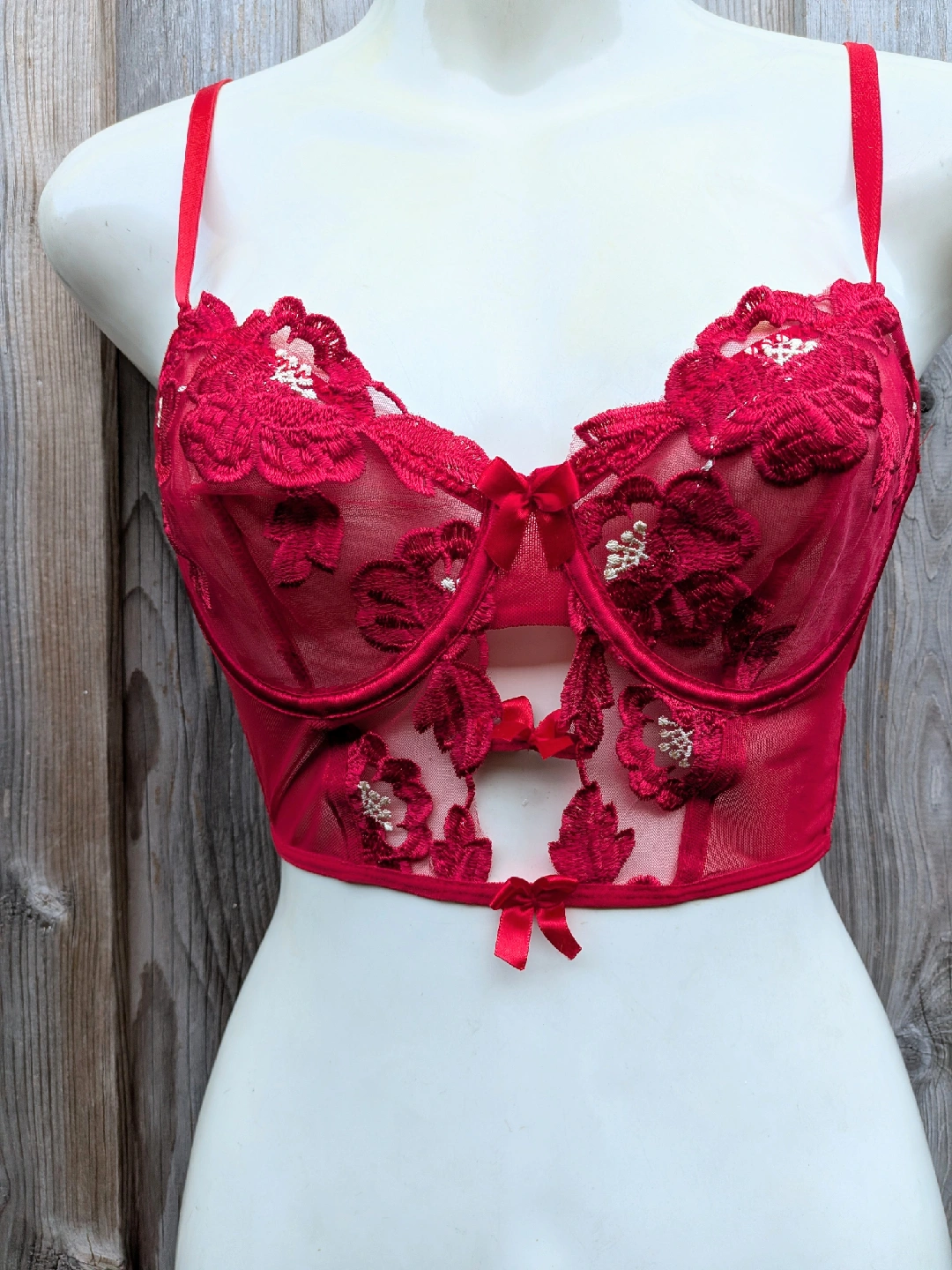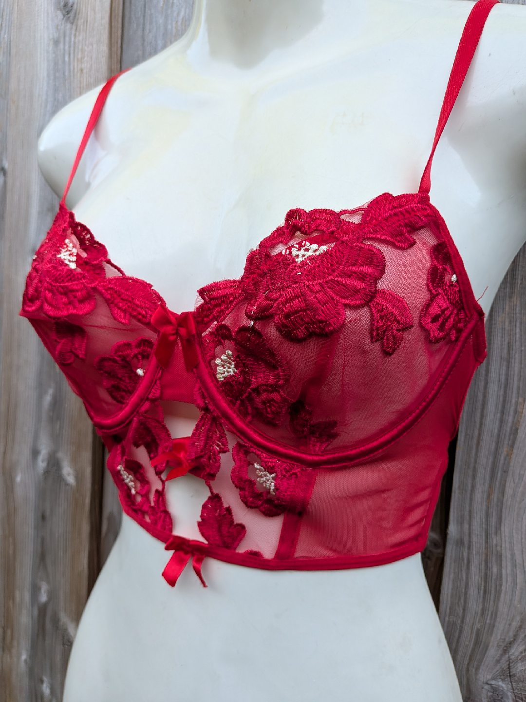 Red Floral Lace Bustier Bra - Medium, Small cup size