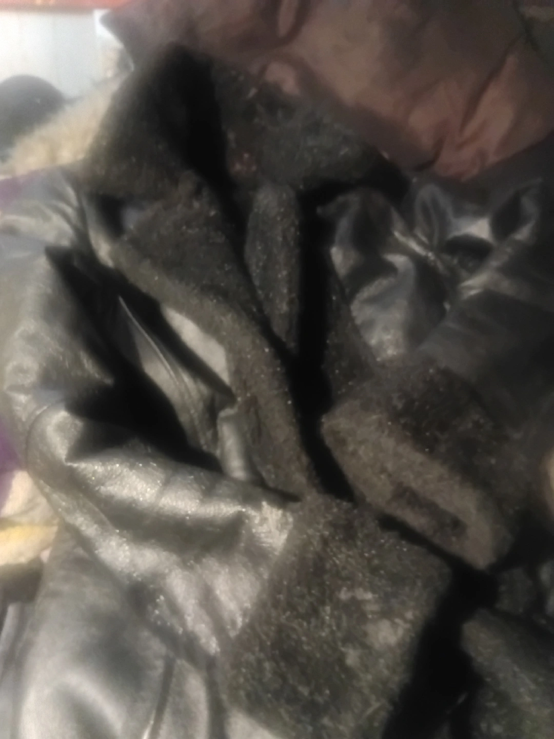 10Selling a black leather jacket. It's in good condition and ready for a new home! It has a soft lining for extra warmth during the colder months