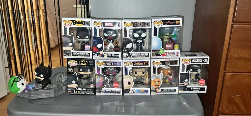 Batman Scythe #397-50$ Batman (Lights and Sounds) #448-55$ Spider-Man (Captain Universe)#614-45$ Infinity Ultron #977-30$ Venomized Punisher #595-40$ Thor #286-30$ Mysterio #473-40$ Beta Ray Bill #582-35$ Batman DCeased #421-45$ Batman vs the Joker #280-45$ (NO BOX)