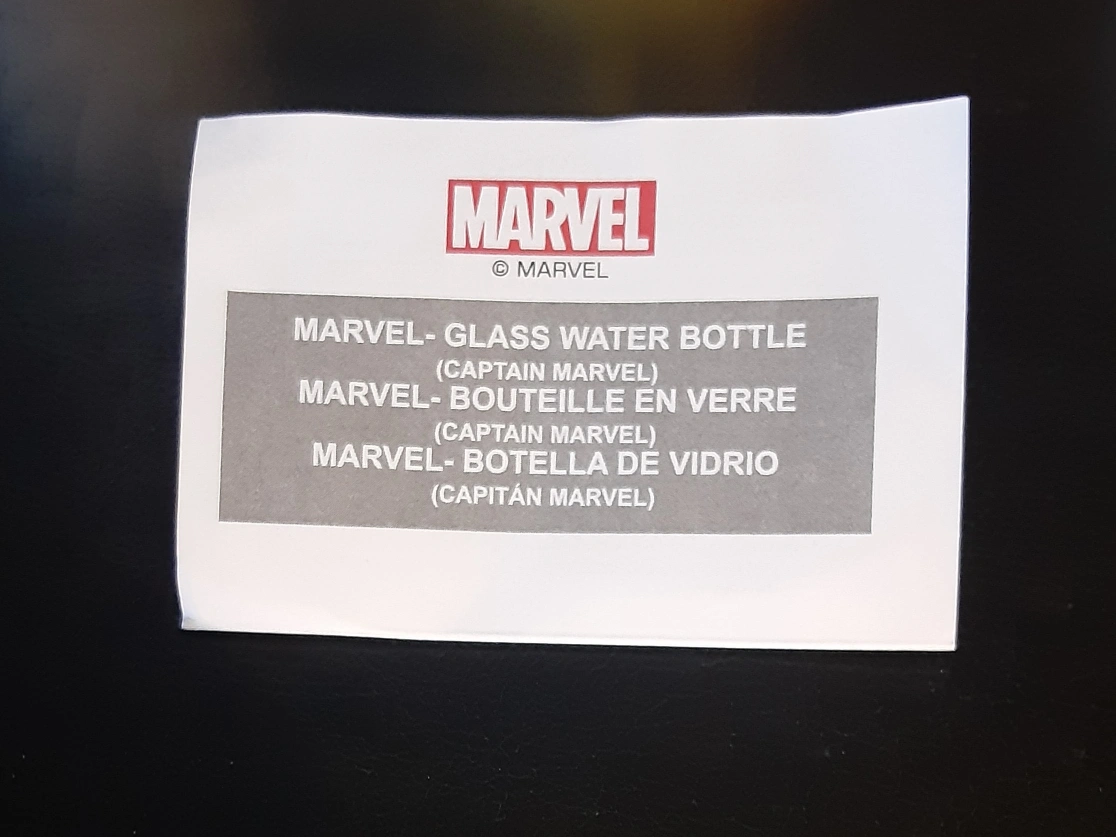 Selling a Marvel Captain Marvel glass water bottle! It holds 450ml and features a fun Captain Marvel design. Perfect for any Marvel fan!