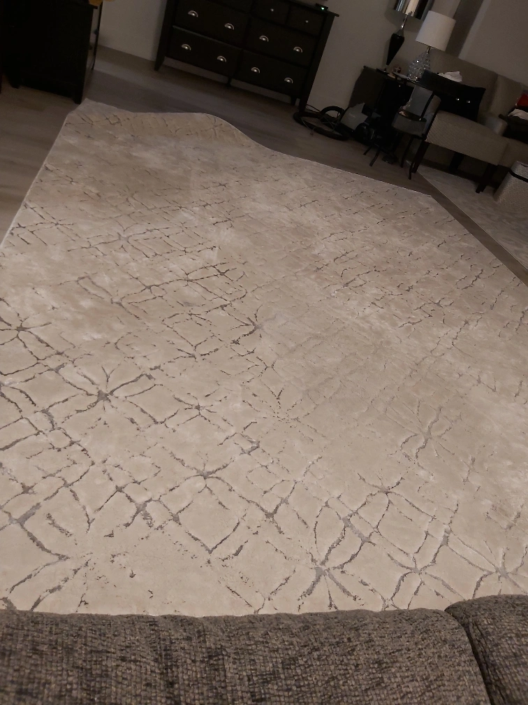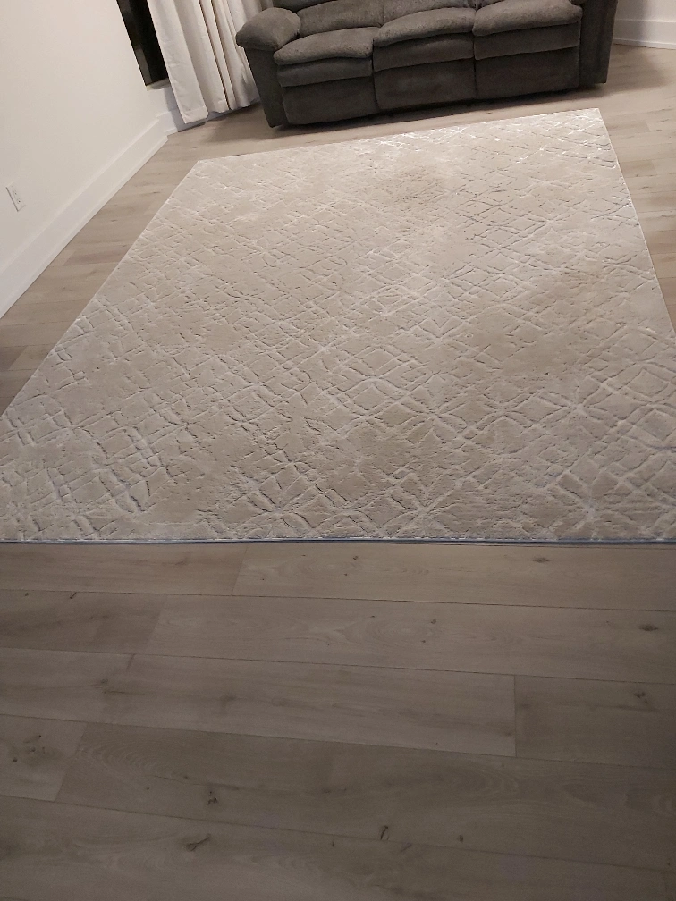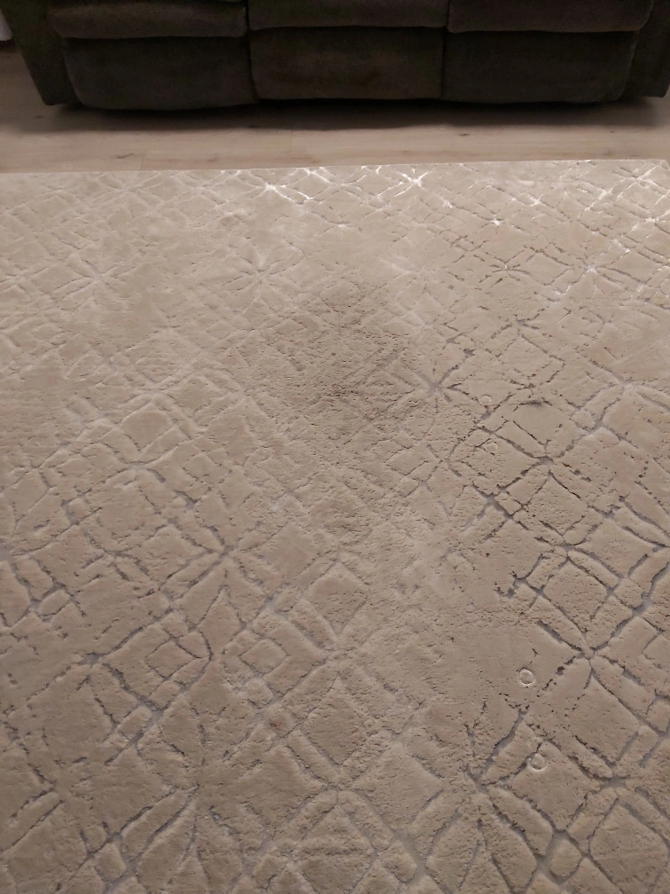 Most of it was under a couch. A little bit of wear in one area but not really noticeable.