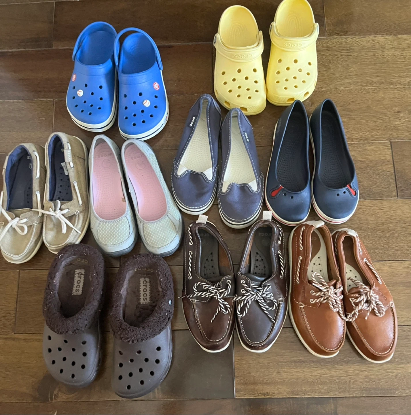 Selling Crocs shoes in various styles and sizes! There are classic clogs, boat shoes, and flats available. All are in good used condition and ready for a new home. Perfect for casual wear and comfort! $5 to $10 each