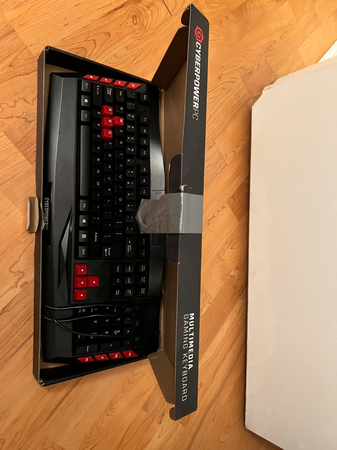 Selling a CyberpowerPC multimedia gaming keyboard! It's black with red accents and comes with its original box. Great for gaming or everyday use