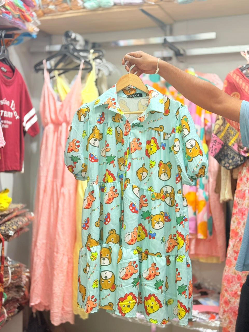 ✨ $28– Cartoon Animal Print Tiered Smock Dress