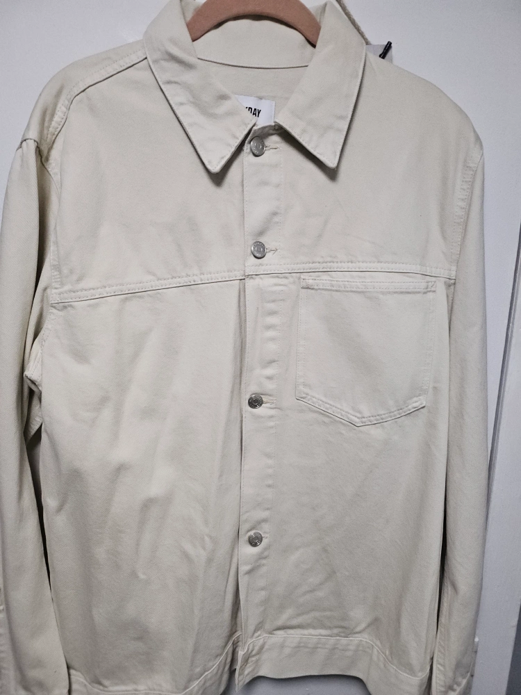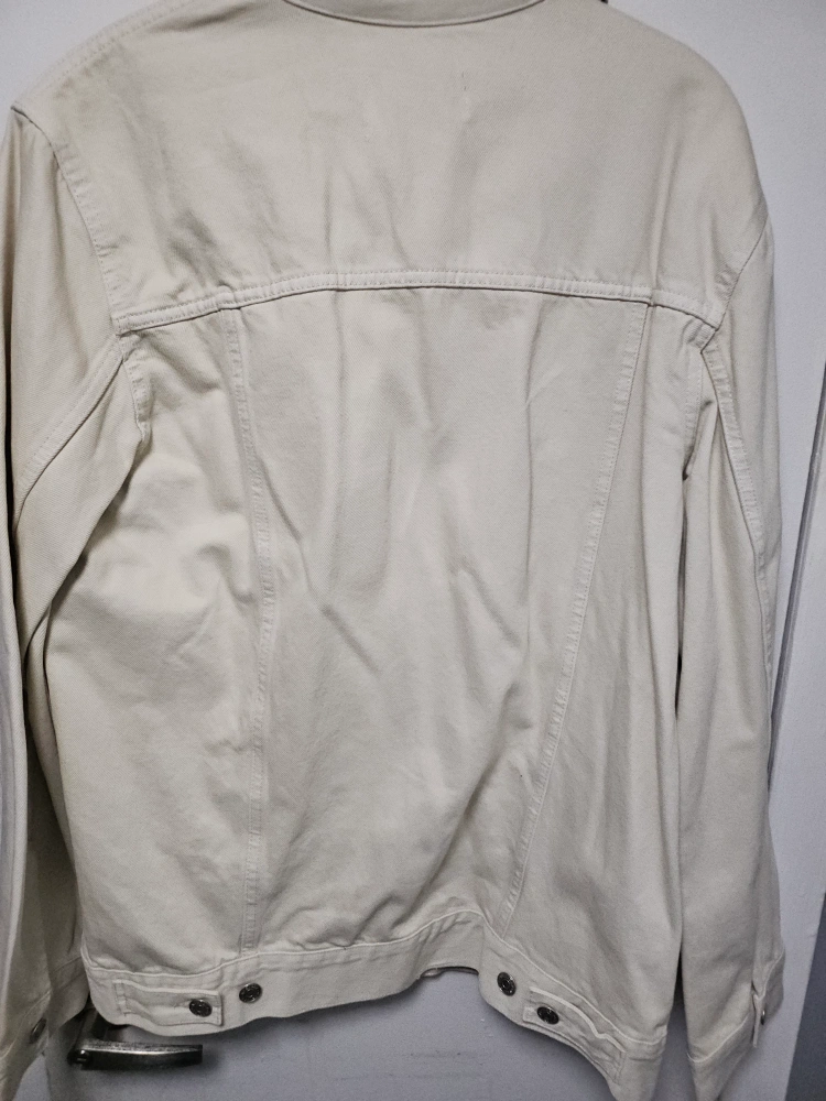Selling a Weekday denim jacket in a lovely beige color! It's a size M and in great condition. Perfect for layering or wearing on its own. The jacket is made of durable denim material and features a classic design.