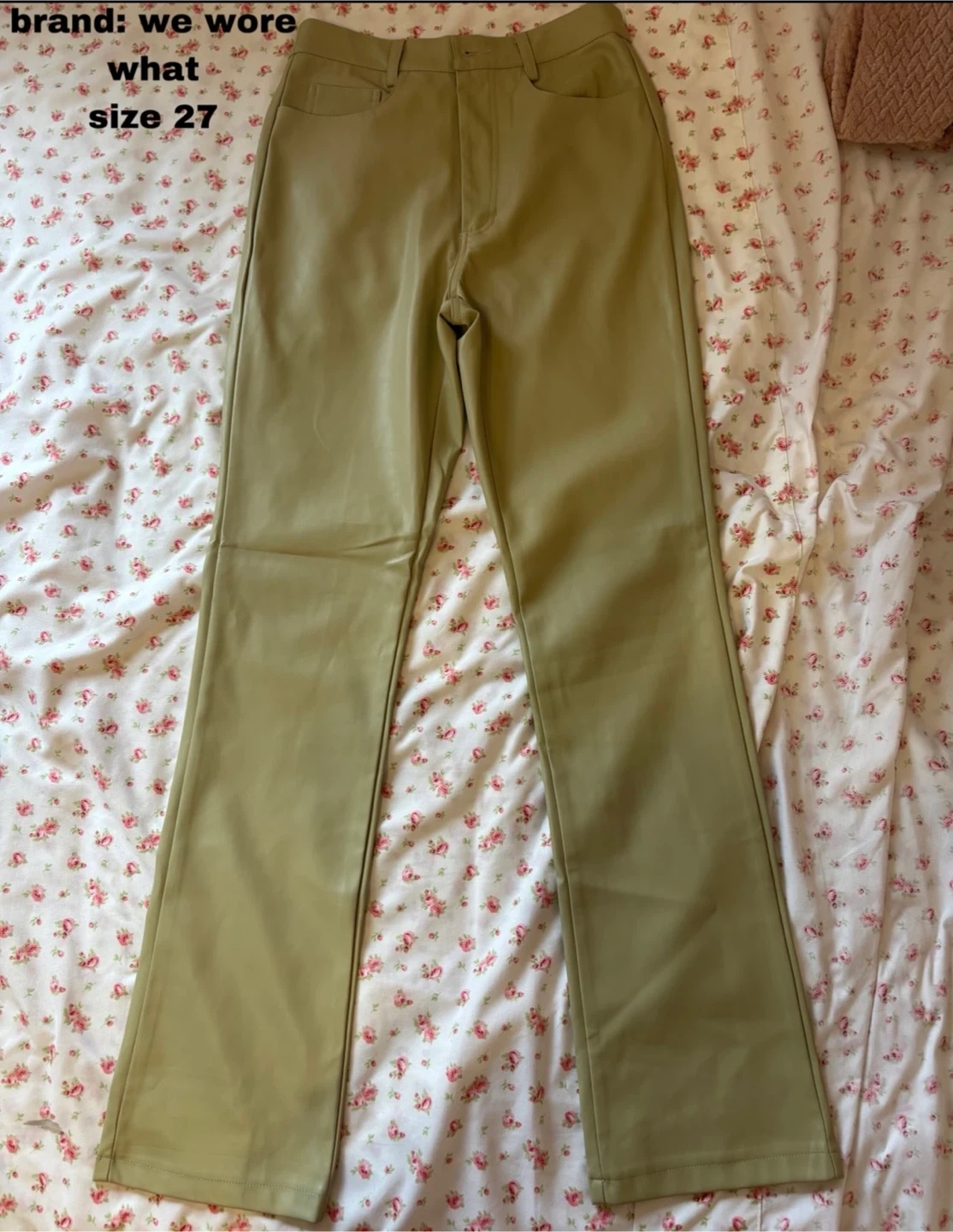 We Wore What tan faux leather pants. No holes or stains. Size 27