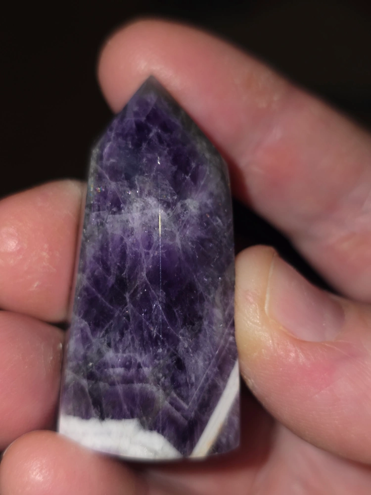Here's a beautiful amethyst point crystal! It features lovely shades of purple and white. It's perfect for display or for use in your crystal healing practice. pickup near High Park Station.
