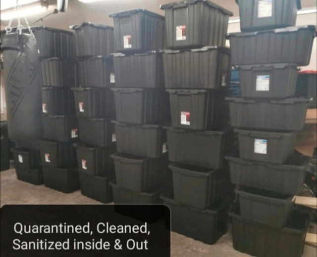 USED bins (Limited supply) SALE $10.08 off regular price Gently used, cleaned/Sanitized inside & out with no cracks in perfect condition. $11.91 (grey lids) (Taxes apply. Regular price $21.99 +GST) *While supplies last, prices subject to change*